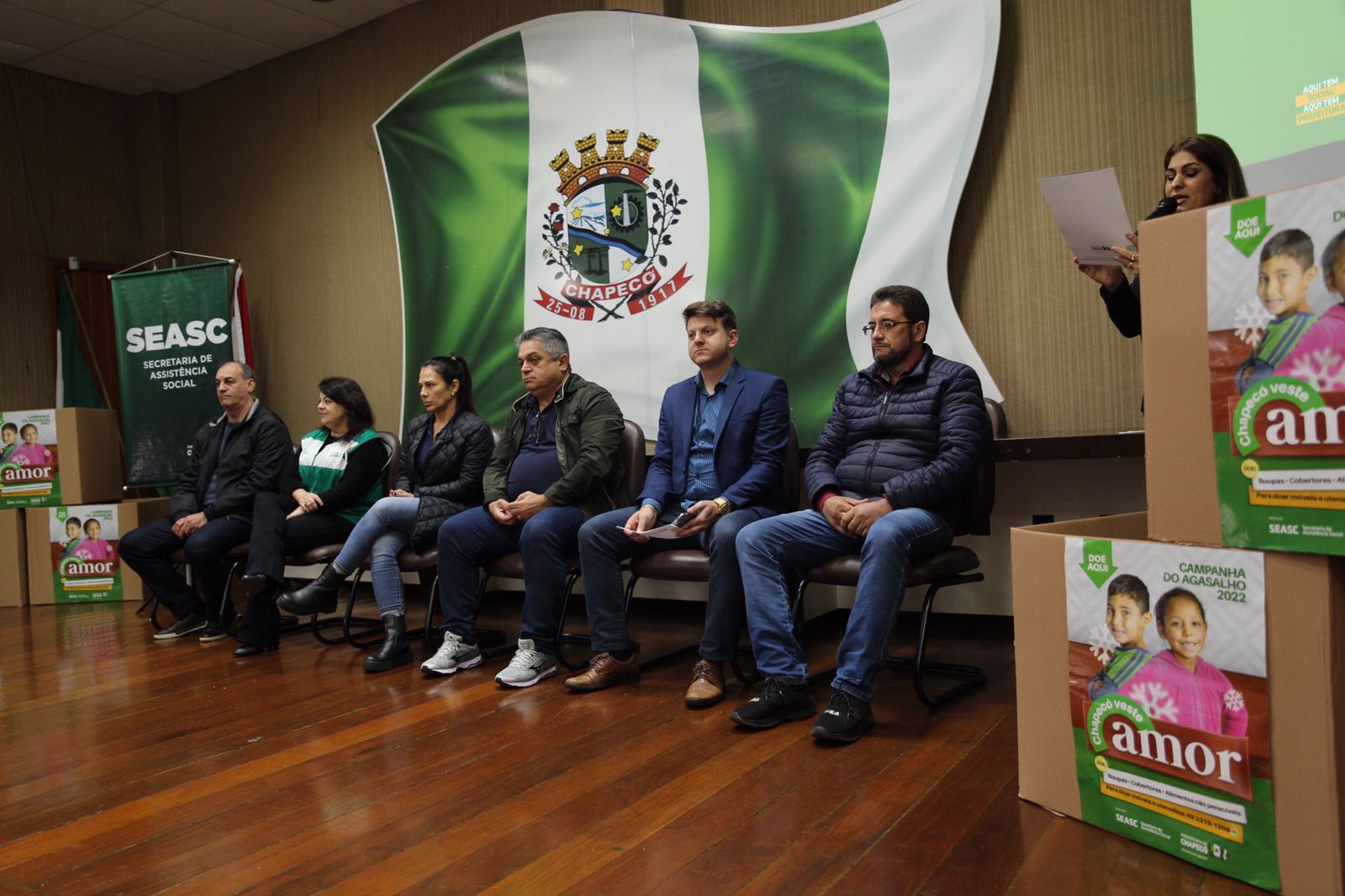 A Campanha do Agasalho Chapecó Veste Amor, promovida pela Administração Municipal, foi lançada na manhã desta segunda-feira, no auditório da Prefeitura. De acordo com a secretária de Assistência Social, Elisiani Sanches, a meta é arrecadar mais de 40 mil peças. A campanha também está arrecadando móveis e alimentos não perecíveis.