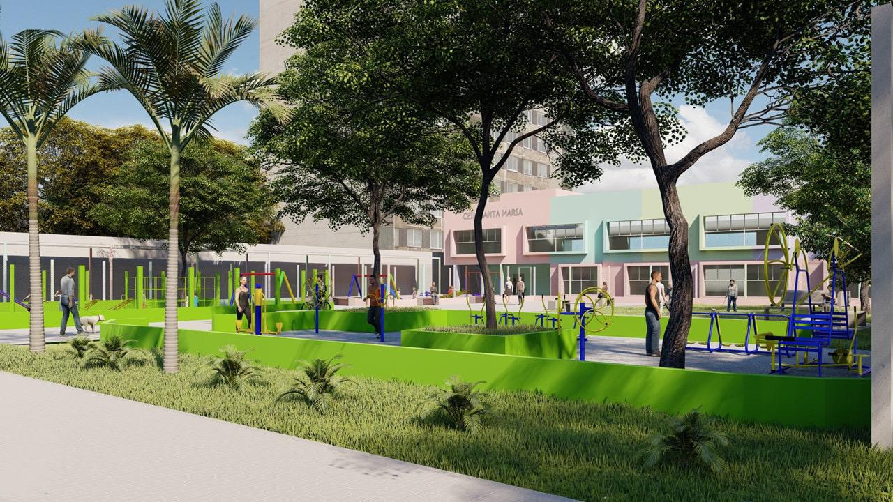 Recentemente foi lançada a ordem de serviço para o Centro Multiuso do Esplanada, com campo e 12 salas de aula para oficinas de robótica, informática e artes, no contraturno escolar.