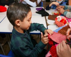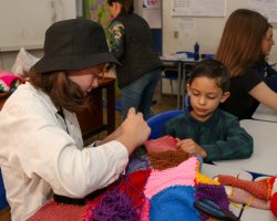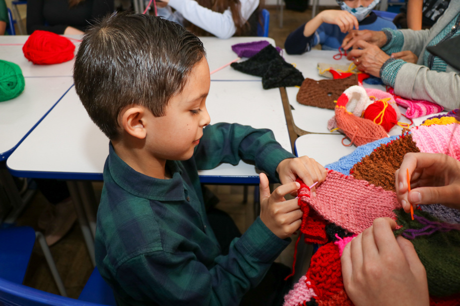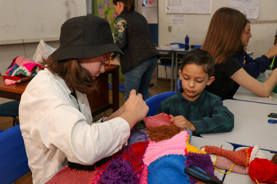 Durante o 2º Dia da Família na Escola foi organizada uma oficina de tricô em que as avós e mães que dominavam a técnica, ensinaram para as famílias presentes. Com isso, foi lançado um desafio: produzir pelo menos cinco quadradinhos com barbante e agulha que posteriormente foram unidas para formar as mantas. Todo o material produzido por alunos e familiares foi doado a alunos das escolas que mais necessitavam para se aquecer no frio da estação.
