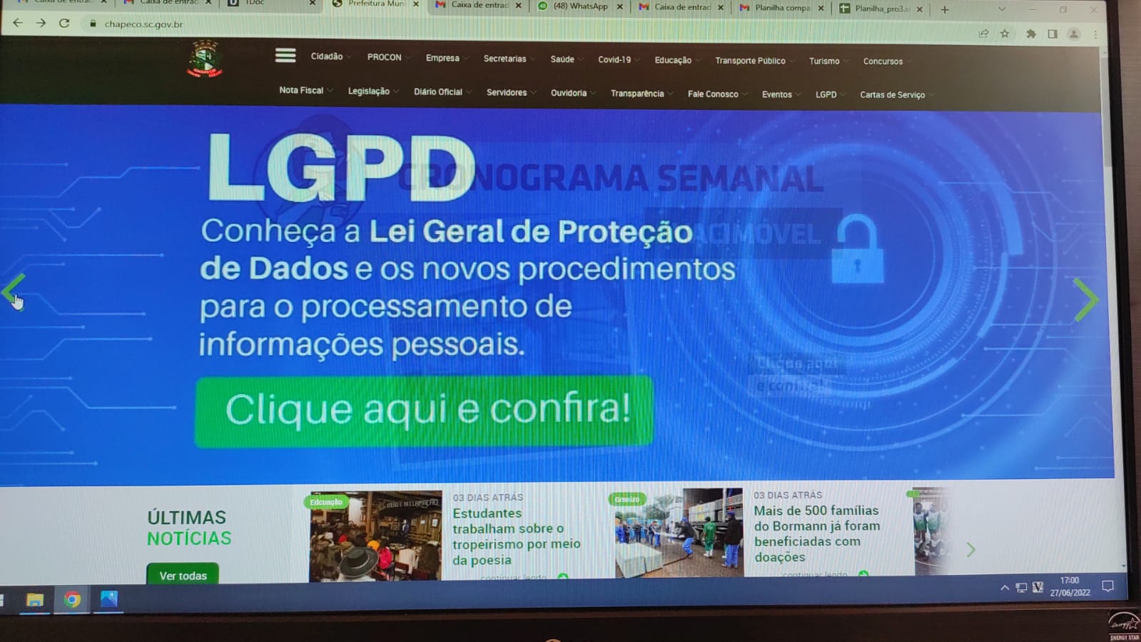 A Administração Municipal de Chapecó criou um link com informações sobre a Lei Geral de Proteção de Dados (LGPD), criada em 2018 e que entrou em vigor em setembro de 2020, com o intuito de proteger a privacidade das informações dos usuários. O link pode ser acessado no site da Prefeitura: https://lgpd.chapeco.sc.gov.br/