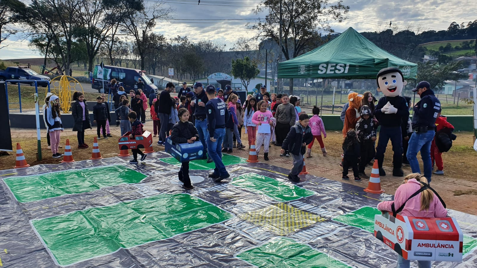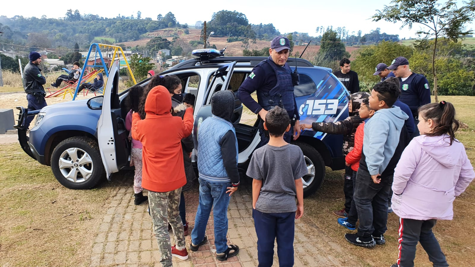 A Guarda Municipal de Chapecó (GMC) realizou recentemente uma atividade para 215 crianças da Escola Básica Municipal Vila Rica. De acordo com o comandante da GMC, Roger de Lima, a ação fez parte da disciplina Ambiente Escolar e Entornos, dentro do curso de Formação do órgão de segurança pública.