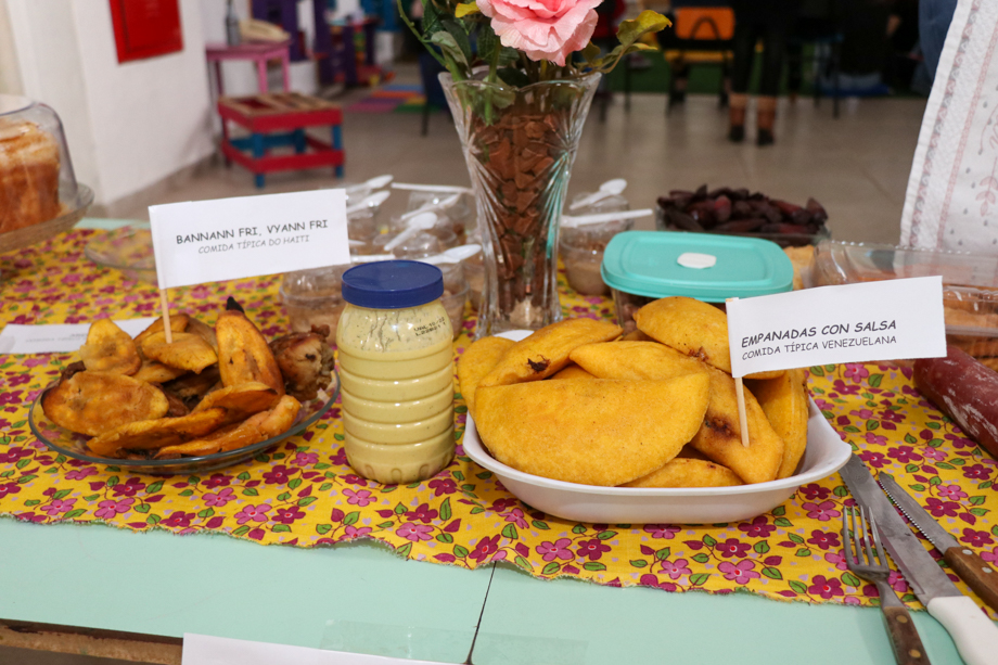No encontro, que aconteceu no dia 27 de junho, foi realizada uma conversa com o representante da Central de Atendimento do Imigrante - CAI para esclarecimentos e socialização de experiências com o corpo docente e um representante de cada cultura. Foi organizado também um momento de degustação de alguns alimentos da cultura das crianças matriculadas no CEIM.