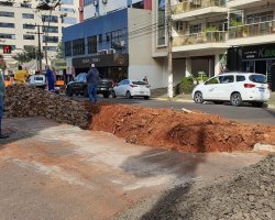 A recuperação está sendo feita quadra por quadra, com a necessidade de deixar o trânsito em meia pista. A orientação é para que os motoristas evitem este trecho ou reduzam a velocidade ao passar pelo local.