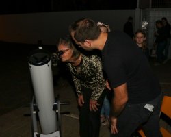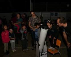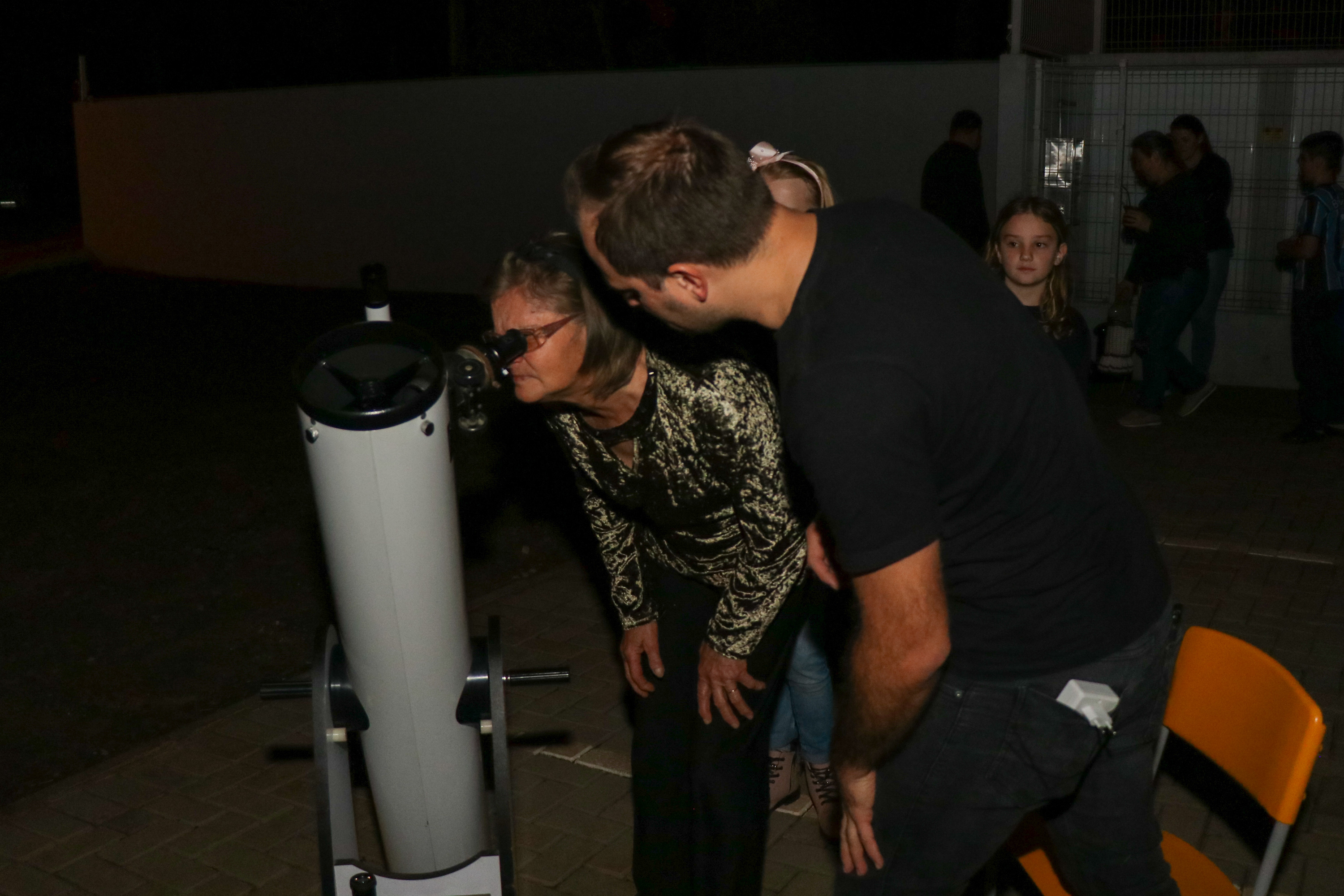 Enquanto a noite chegava, algumas estrelas começaram a brilhar em meio às nuvens. A Lua, em sua fase crescente, dava sinais de que mesmo com o céu parcialmente nublado, proporcionaria um espetáculo à parte. Para refinar a noite, um telescópio foi montado em meio aos presentes. As crianças estavam ansiosas, pois seria a primeira vez que veriam o satélite natural da Terra através da ocular do equipamento.