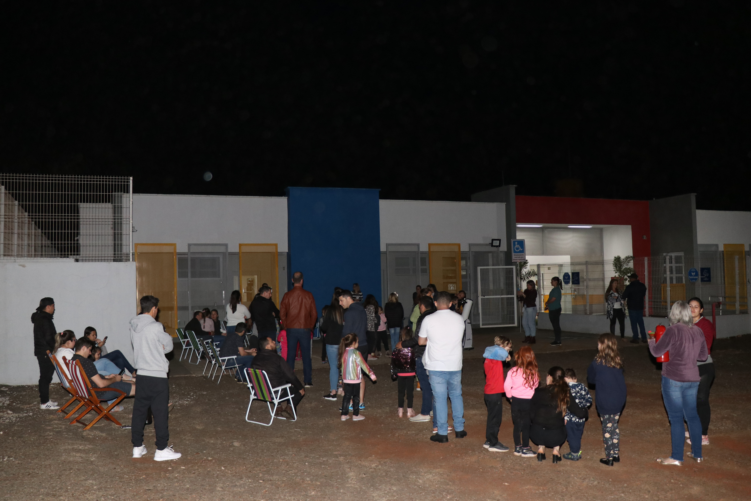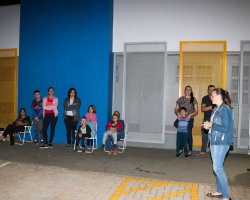 O Sol já estava abaixo do horizonte, aos poucos o crepúsculo foi embelezando o fim da tarde de Chapecó. Crianças e seus familiares, professores e equipe gestora do CEIM Professora Juliana Sive Pommerening foram se aconchegando no estacionamento para uma atividade muito especial.