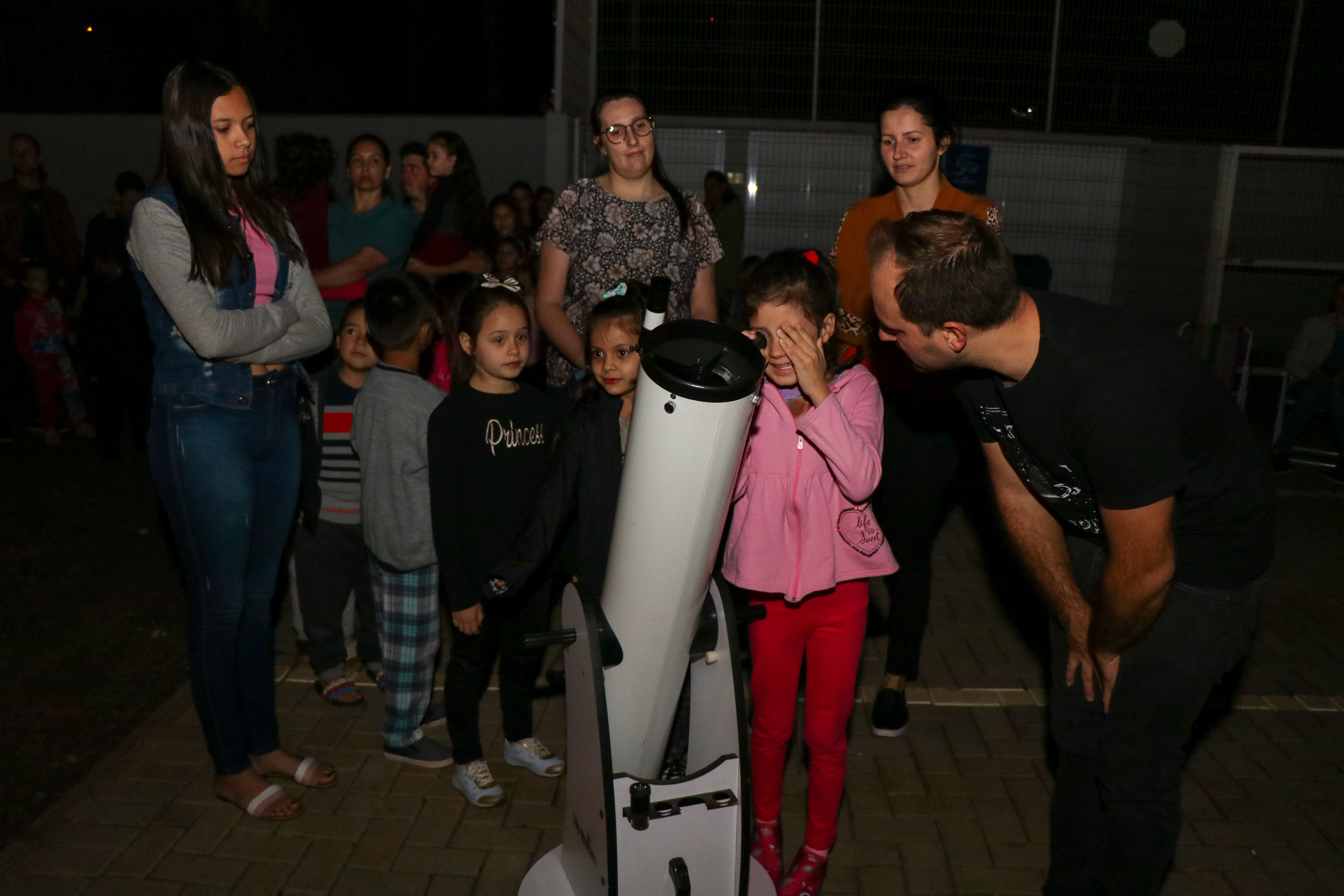 Como é fascinante a curiosidade que as crianças têm sobre todas as coisas! O universo, em especial, parece chamar mais a atenção, até nós que somos adultos questionamos e queremos entender como funciona. Essa experiência de observar a Lua com o telescópio será um marco na vida deles, expandindo a percepção de dimensões e grandezas do espaço, comentou a Secretária de Educação, Astrit Tozzo.