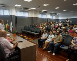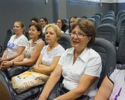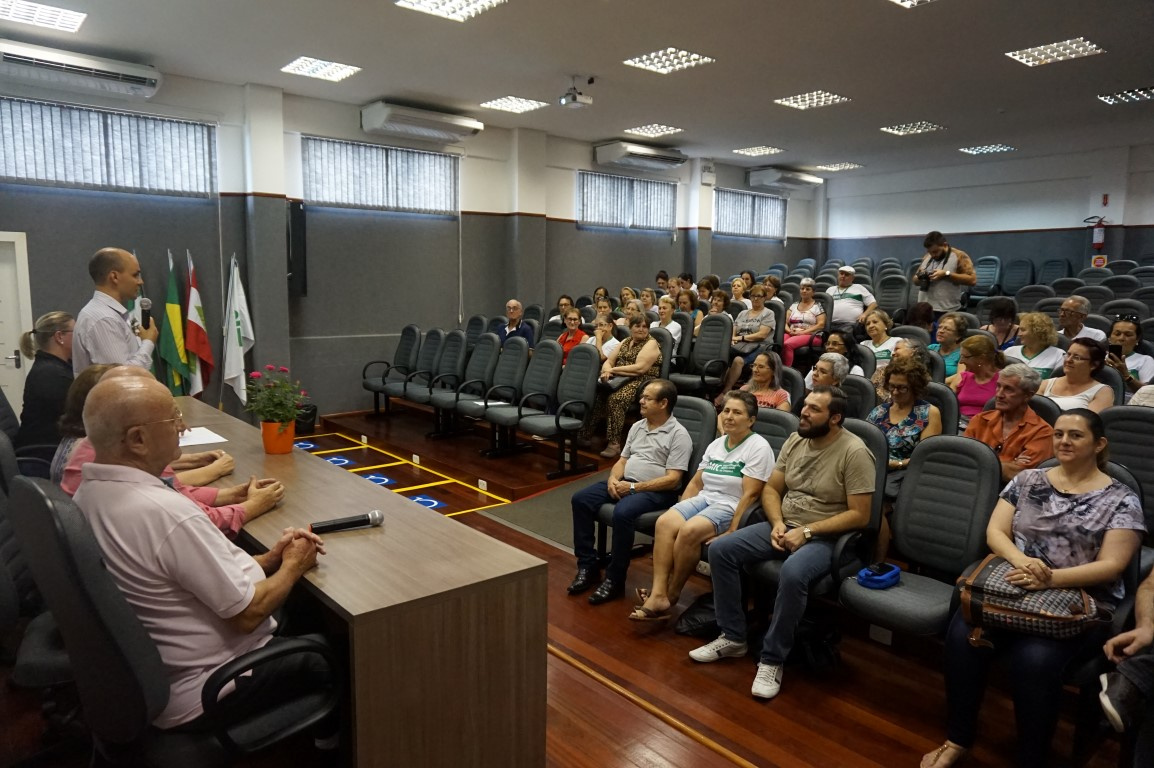 A recepção aos 52 alunos matriculados na UMIC Universidade da Melhor Idade aconteceu nesta terça-feira (06) na Unoesc Chapecó. Estiveram presentes a Secretária de Assistência Social de Chapecó, Ulda Baldissera, Professor Celso Paulo Costa, Diretor de Graduação, Pesquisa, Pós Graduação e Extensão; Professora Ana Márica Debiasi, Gerente Administrativa da Unoesc; Clóvis Marinello, Sandra Maria Toffolo, Coordenadora da UMIC; Gerente de Proteção Básica da Secretaria de Assistência Social, alunos e professores da UMIC.