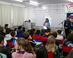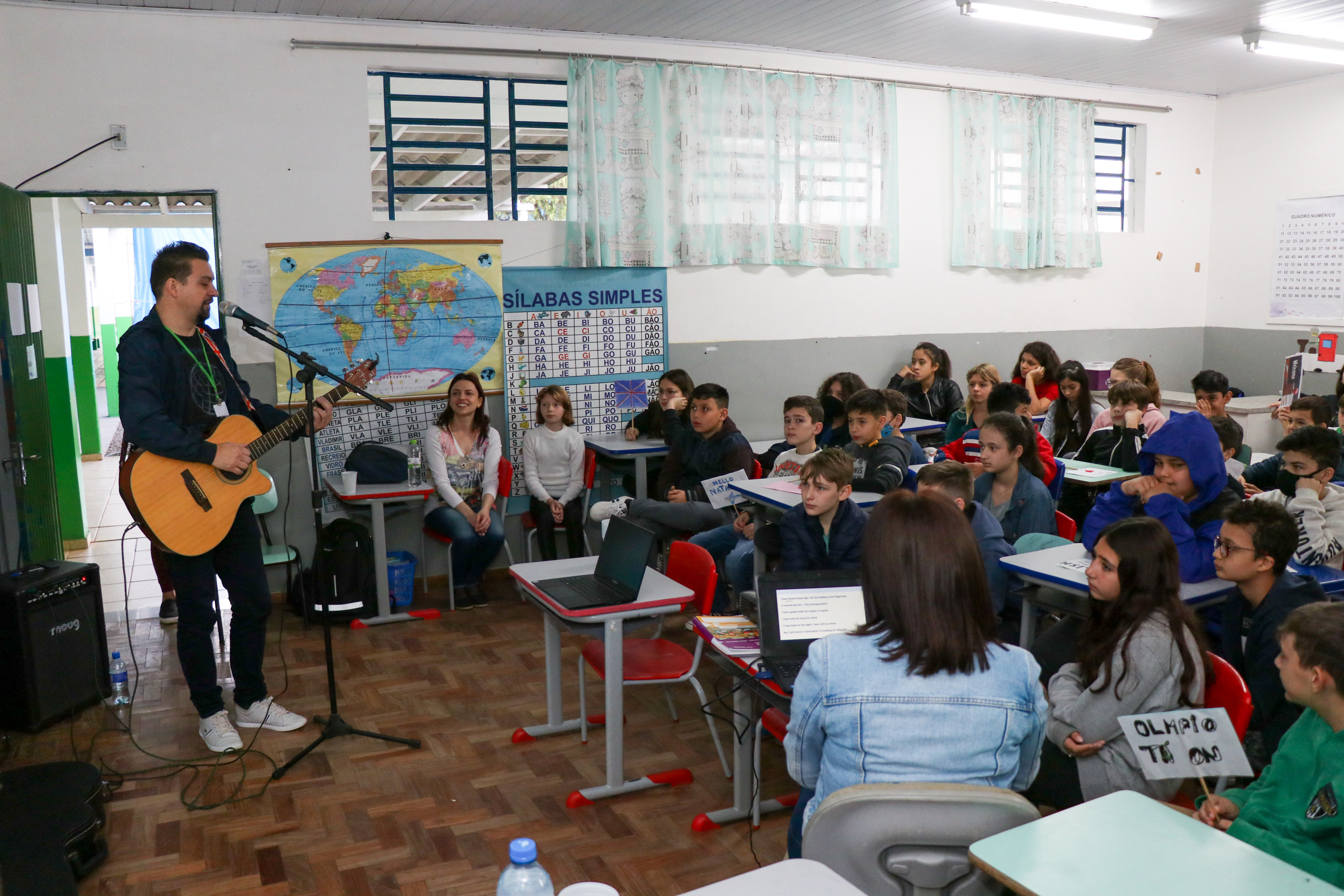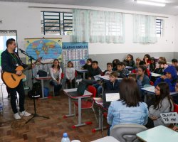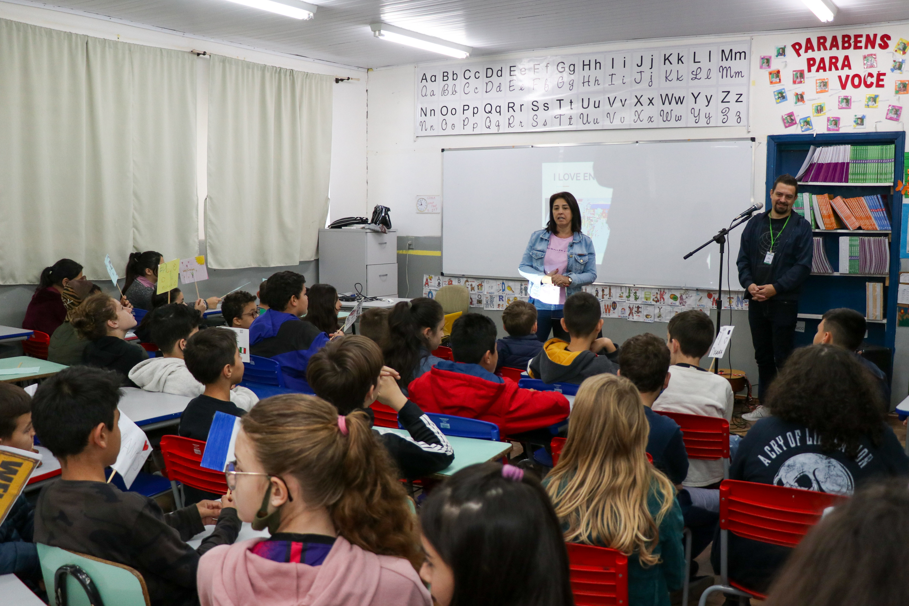 Durante a atividade foi destacada a importância de se aprender mais de uma língua estrangeira, tendo em vista todo o acesso que os estudantes têm a informações, jogos, filmes, música e formação escolar e profissional, uma vez que o Inglês é o idioma mais utilizado mundialmente. Além da explanação, outras atividades complementaram a experiência, como algumas canções apresentadas com voz e violão, ressaltando a pronúncia das palavras. O Componente Curricular de Língua Inglesa está presente no currículo da Rede Municipal de Ensino desde 2012, e é trabalhada com as turmas do 1º ao 9º ano. Sabemos da sua importância para a formação dos estudantes e oportunizar esses momentos de troca de aprendizagem enriquecem ainda mais a formação escolar, destacou Astrit Tozzo, Secretária de Educação.