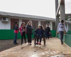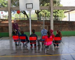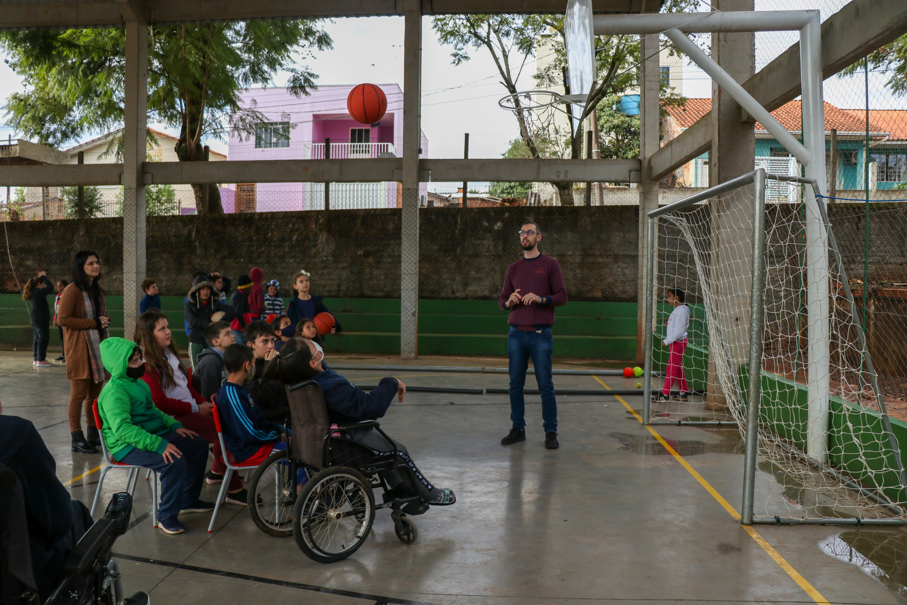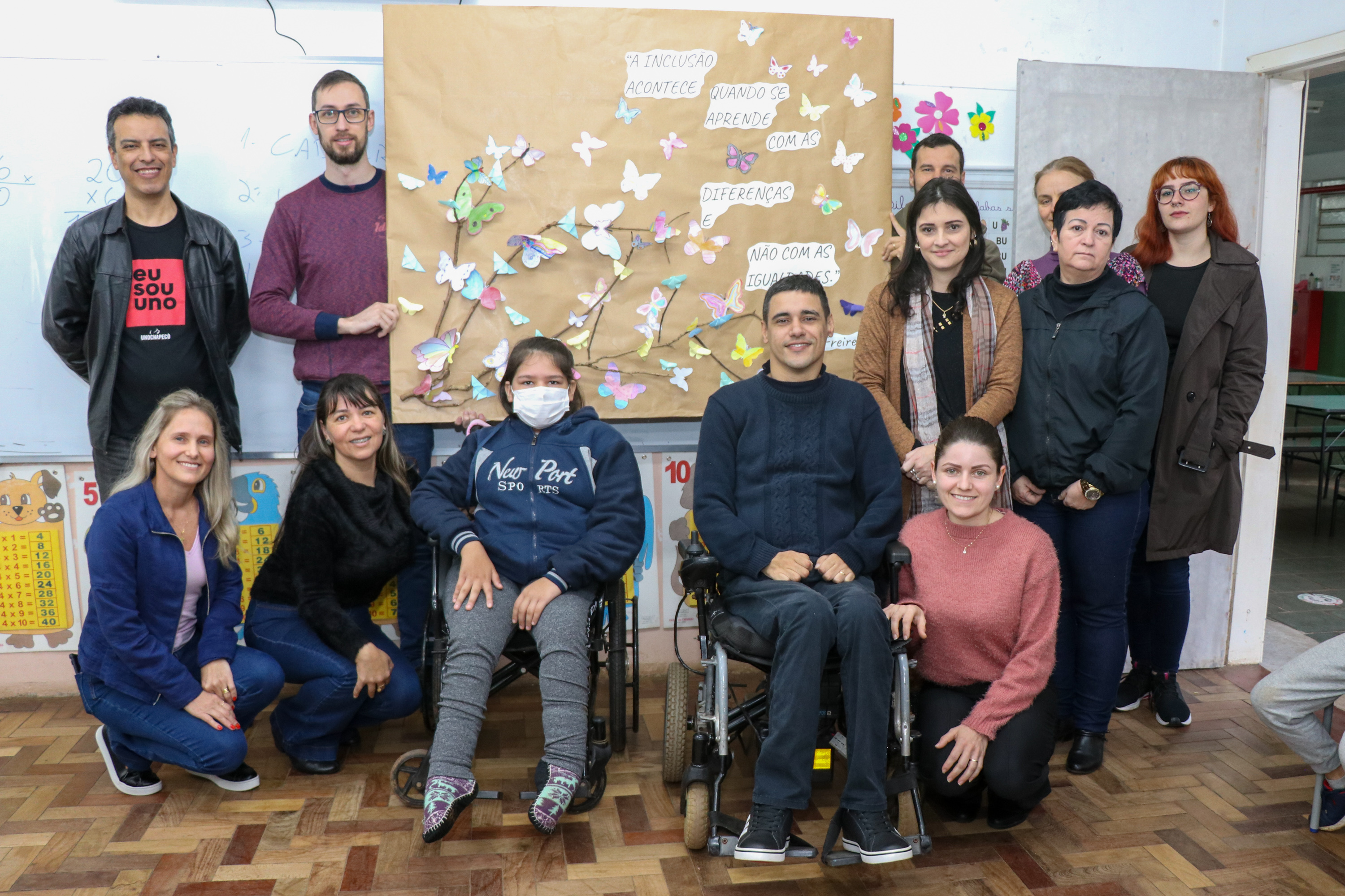 Os alunos da EBM Clara Urmann, no Parque das Palmeiras, estão participando de atividades para aprenderem sobre inclusão. O projeto foi organizado pela coordenação escolar em parceria com os professores da instituição e tem como objetivo apresentar aos estudantes o dia a dia de pessoas com deficiência.