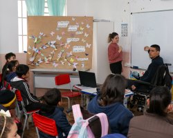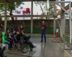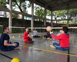 Na segunda atividade desenvolvida, os alunos puderam vivenciar práticas esportivas adaptadas para quem tem a mobilidade reduzida, como bocha, basquete e voleibol sentado. Puderam também locomover-se em cadeiras de rodas explorando o espaço escolar e percebendo as barreiras e dificuldades encontradas por cadeirantes