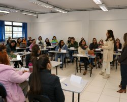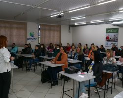 Neste momento, será estudado o material didático utilizado na rede, além de promover discussões sobre temas importantes na educação, o desenvolvimento Infantil de 0 a 2 anos de idade e a cultura escrita e o brincar na Educação Infantil. Essa preparação é organizada para dar maiores subsídios pedagógicos para os professores trabalharem neste semestre. Ainda temos grandes desafios, e esse momento de capacitação é essencial, destacou Astrit Tozzo, Secretária de Educação.
