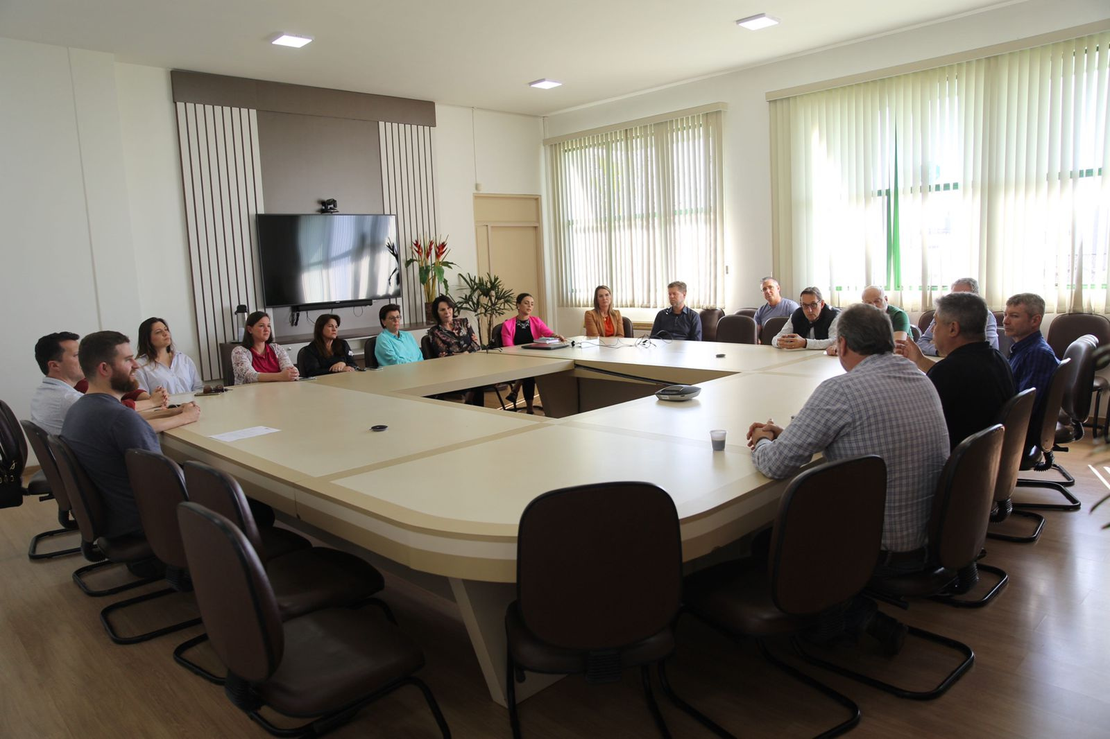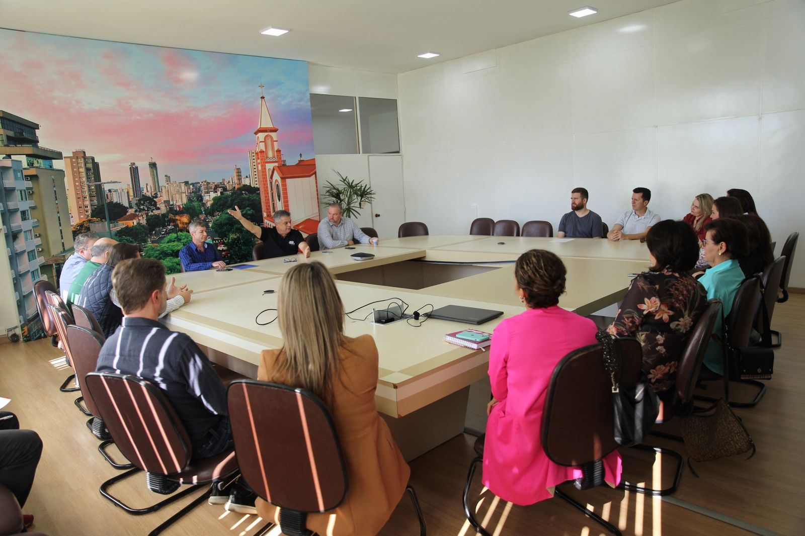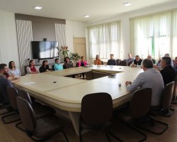 Comerciantes e integrantes das diretorias da Câmara de Dirigentes Lojistas (CDL) e do Sindicato do Comércio da Região de Chapecó (Sicom) estiveram na tarde desta quarta-feira, na sala de reuniões da Prefeitura, com o prefeito João Rodrigues e o secretário de Governo, Thiago Felipe Etges, solicitando uma solução para o estacionamento rotativo de Chapecó.