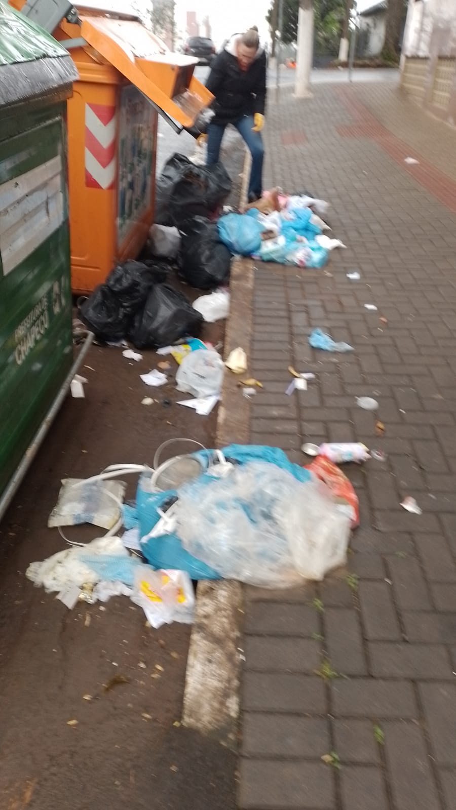 Temos percebido que em muitos locais, em ruas do centro da cidade, em frente a condomínios, as pessoas estão colocando o lixo fora da lixeira. Com isso ele acaba se espalhando e dificultando a coleta. As caixas de papelão também devem ser dobradas e colocadas nos contêineres laranja, que são para materiais recicláveis, disse a gerente de Saneamento da Secretaria de Infraestrutura, Graciela Heckler.