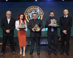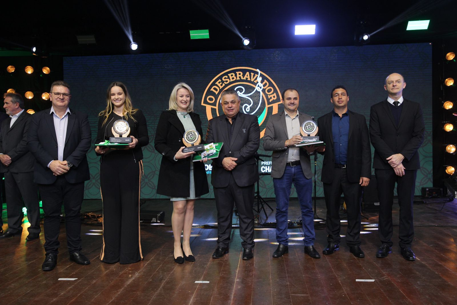 O Salão Nobre Nelson Galina, no Centro de Eventos de Chapecó, foi reinaugurado na noite desta quinta-feira com a premiação do Troféu O Debravador, que entregou 45 troféus e 105 medalhas para empresas e produtores rurais de Chapecó. Cerca de mil pessoas participara do evento, realizado pela Prefeitura de Chapecó.