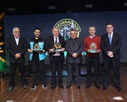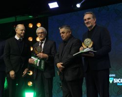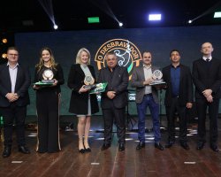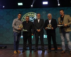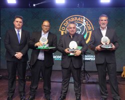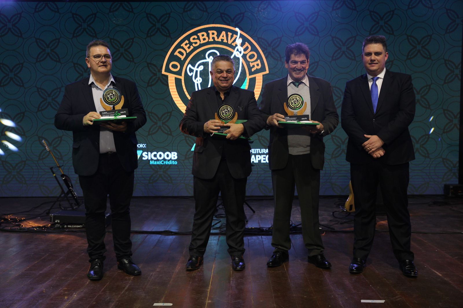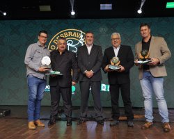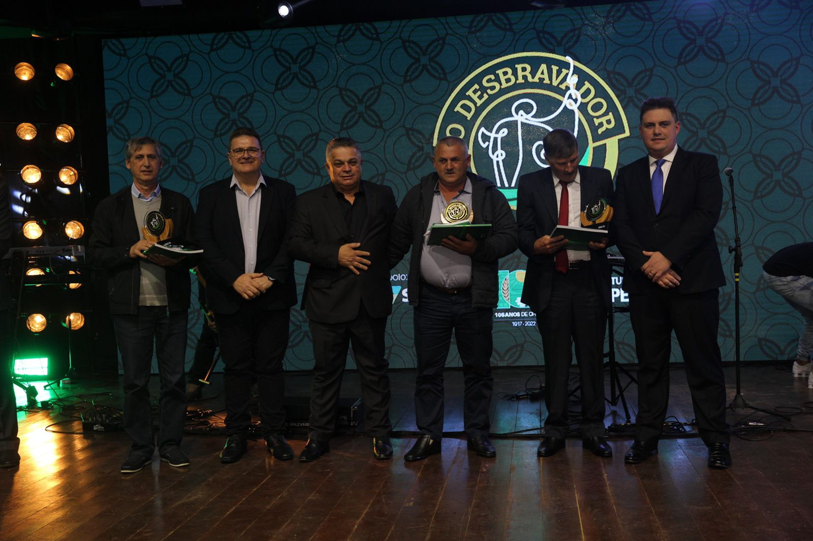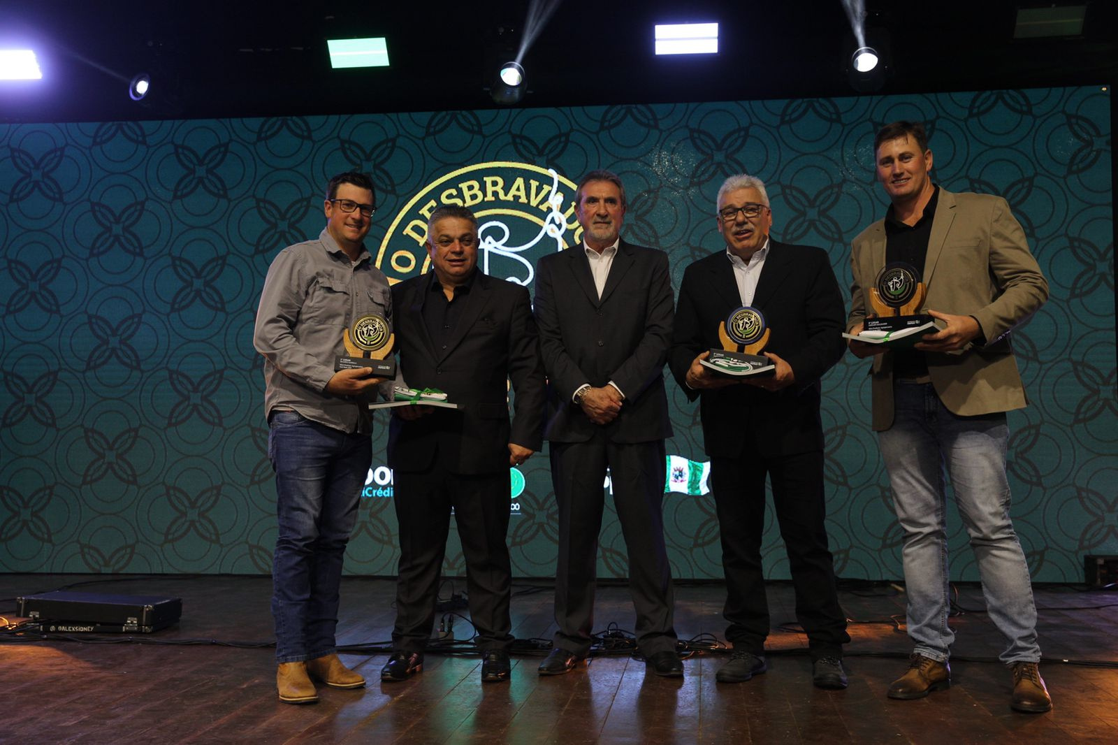 Cella, Urbancic o prefeito fizeram a entrega da premiação, acompanhados dos secretários de Governo, Thiago Felipe Etges, de Fazenda, Moacir Rohr e de Desenvolvimento Rural, Mauro Zandavalli; além do vereador Fernando Cordeiro.