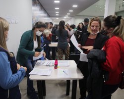 Clair Fátima dos Santos, 59 anos, moradora do bairro Trevo, teve duas boas notícias nesta terça-feira. Pela manhã houve a inauguração do Centro de Saúde da Família Giocondo Cella. À noite, no Teatro do Centro de Eventos, recebeu a autorização do exame de colonoscopia, já com data marcada. Ela foi uma das 492 pessoas beneficiadas no ato.