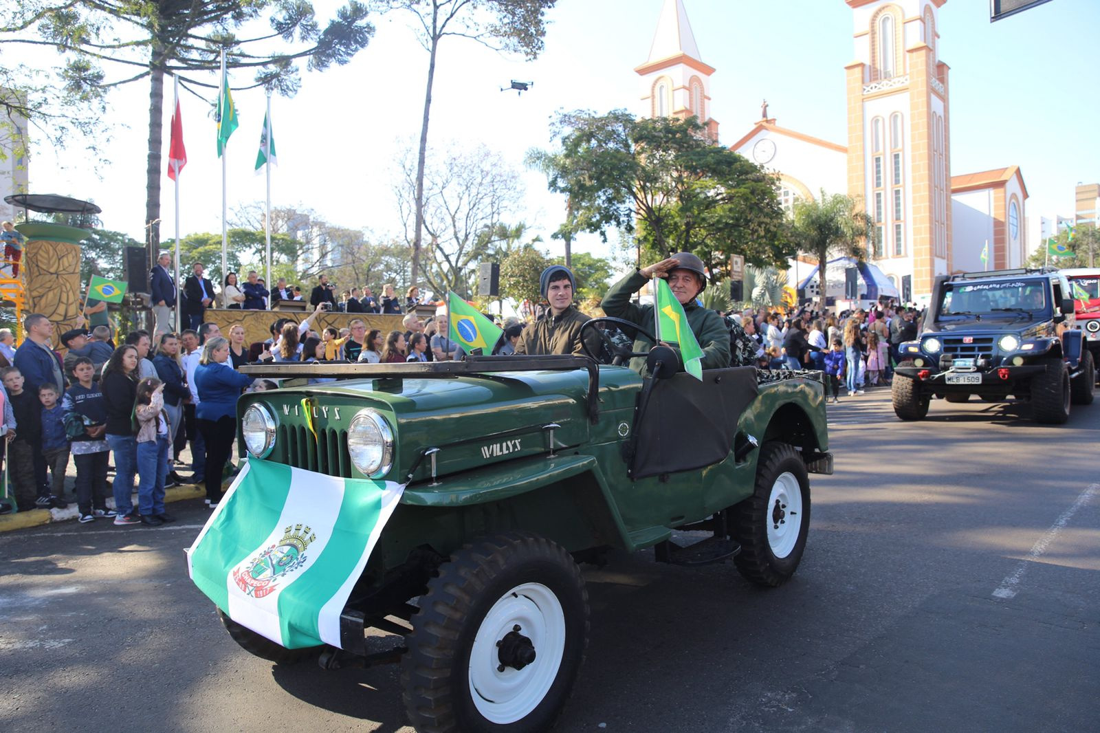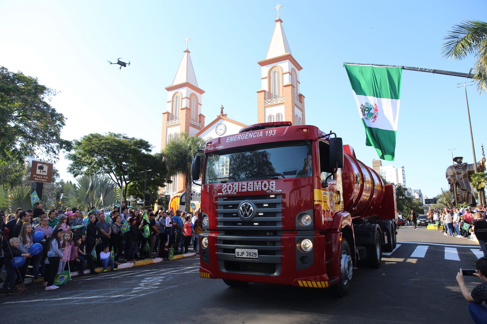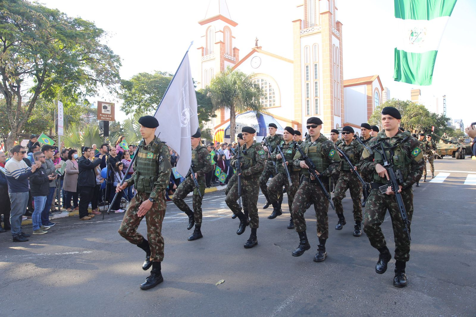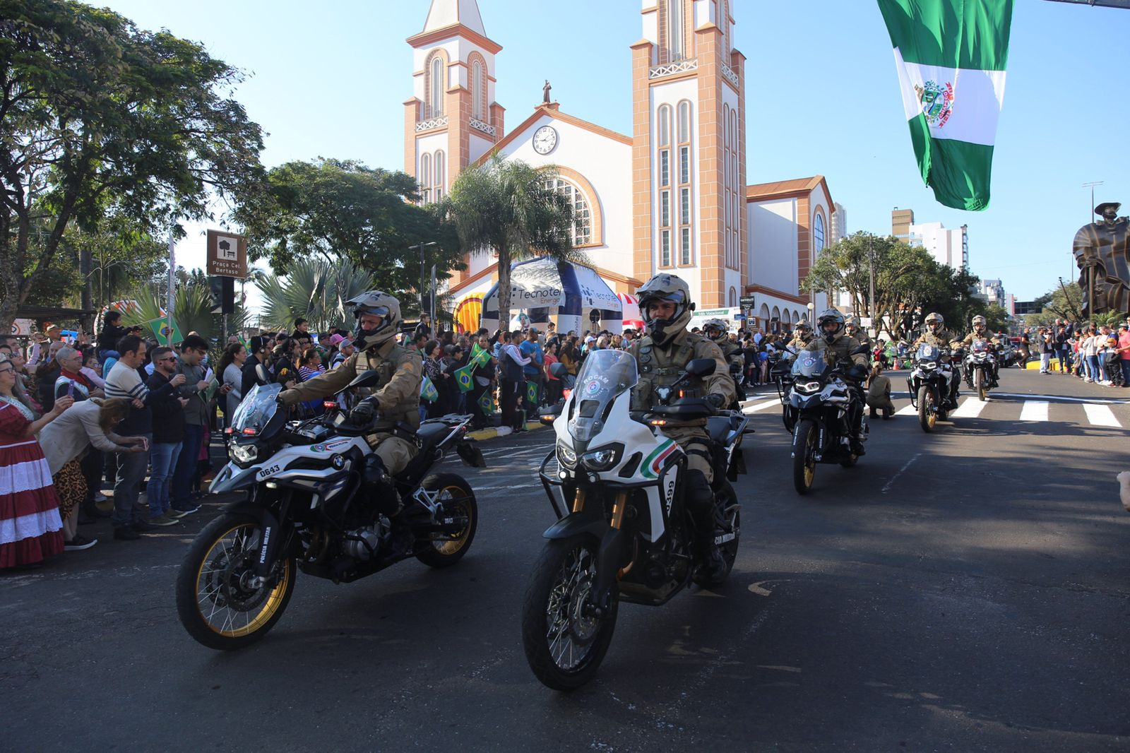 Ela gosta de ver a polícia e ganhou uma bandeira do Brasil. A iniciativa é show de bola, pois resgata o patriotismo e valoriza a nossa cidade, que fica longe do litoral e de outros centros mas é um lugar bom de se viver. Sou de Curitiba mas escolhi aqui para morar, pois é uma cidade boa e bem administrada, disse Oliveira, que também é fã da Chapecoense.