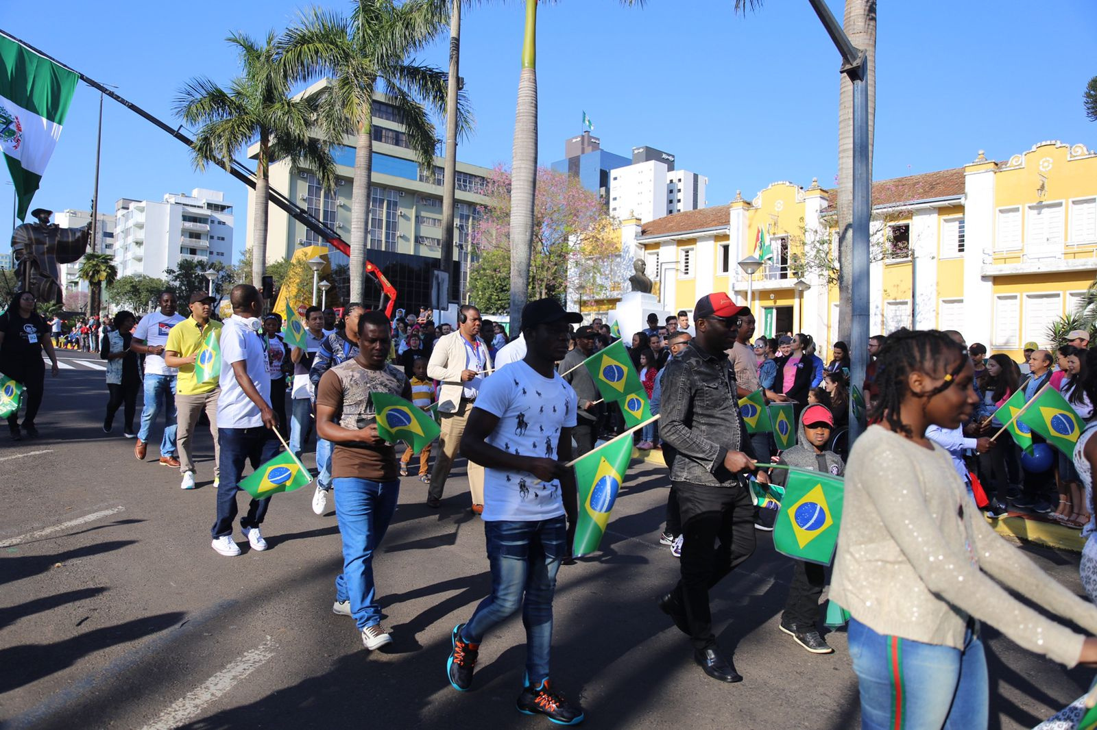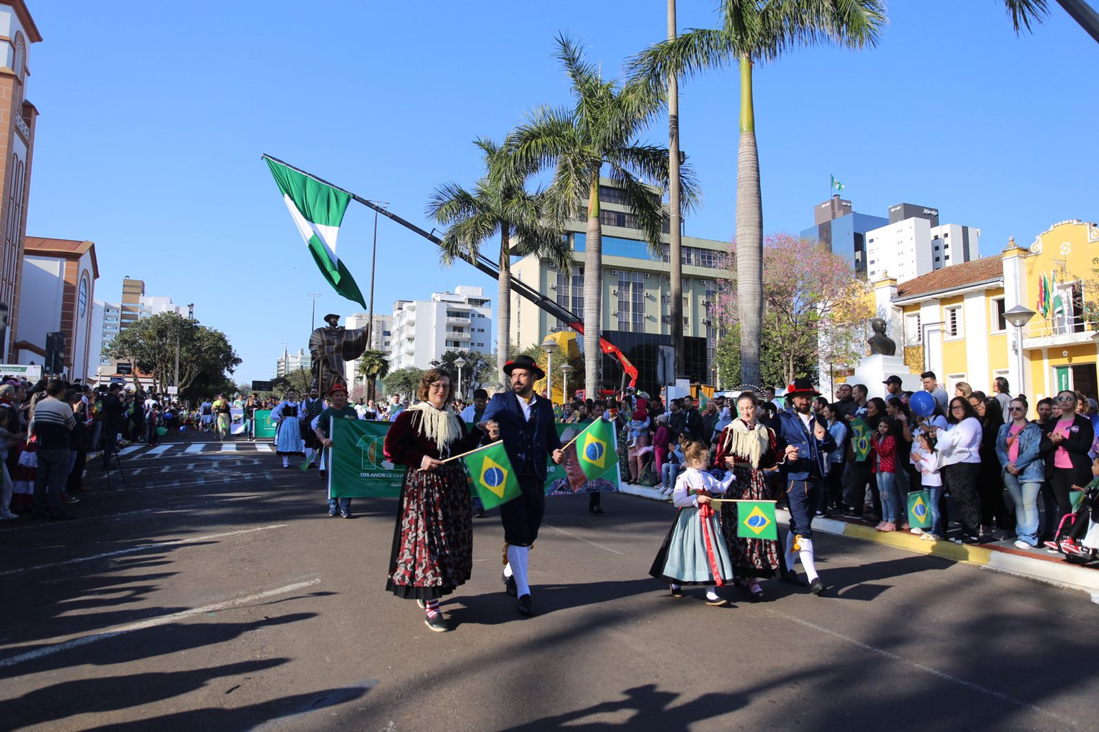 A história de Chapecó é contada por várias mãos, pelos indígenas, migrantes e imigrantes, que riscaram este chão, abriram estradas, ruas e avenidas. Recentemente recebemos uma nova onda de imigrantes, buscando uma vida melhor e ajudando na nossa produção. Despois de muitos anos estamos voltando a realizar o desfile de aniversário do município, pois precisamos valorizar esta que é nossa pátria, é o nosso chão, disse o prefeito João Rodrigues.