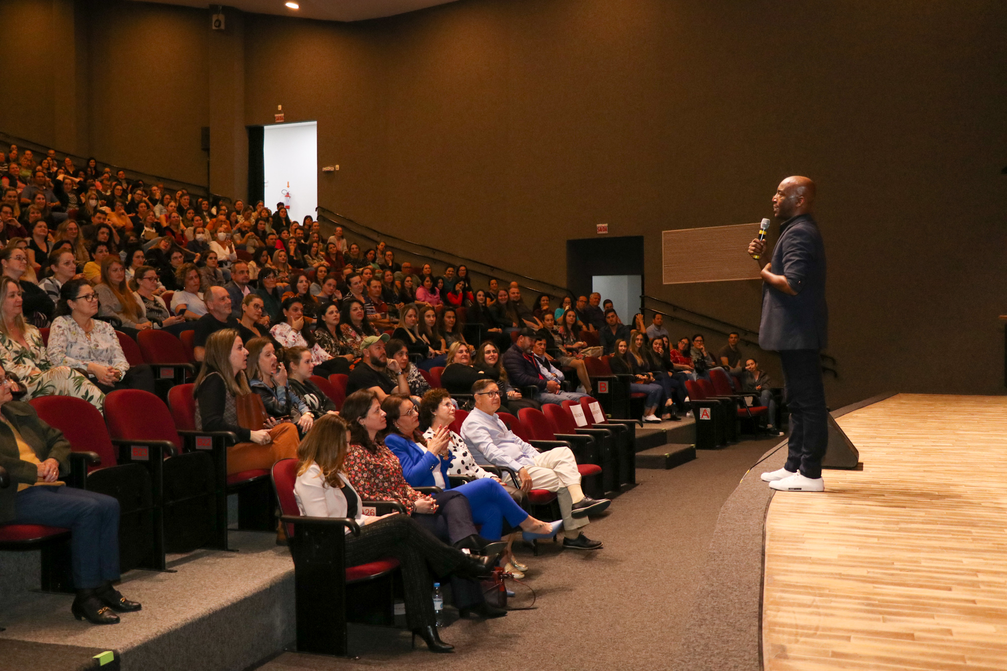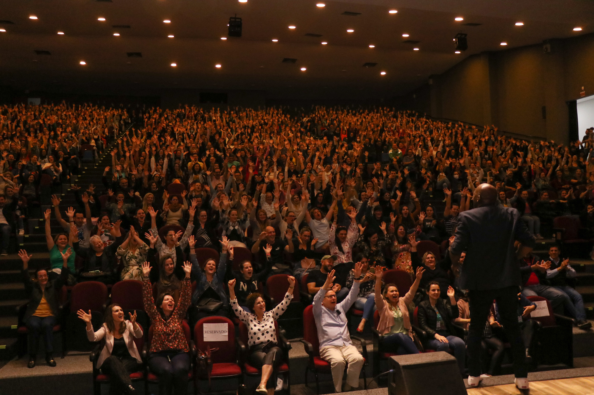 A Prefeitura de Chapecó, em comemoração ao aniversário de 105 anos do município, realizou palestra motivacional para os servidores públicos municipais com o palestrante João Carlos de Oliveira. O evento aconteceu na última sexta-feira (26) no teatro do Centro de Cultura e Eventos Plínio Arlindo de Nes, que estava em sua lotação máxima.