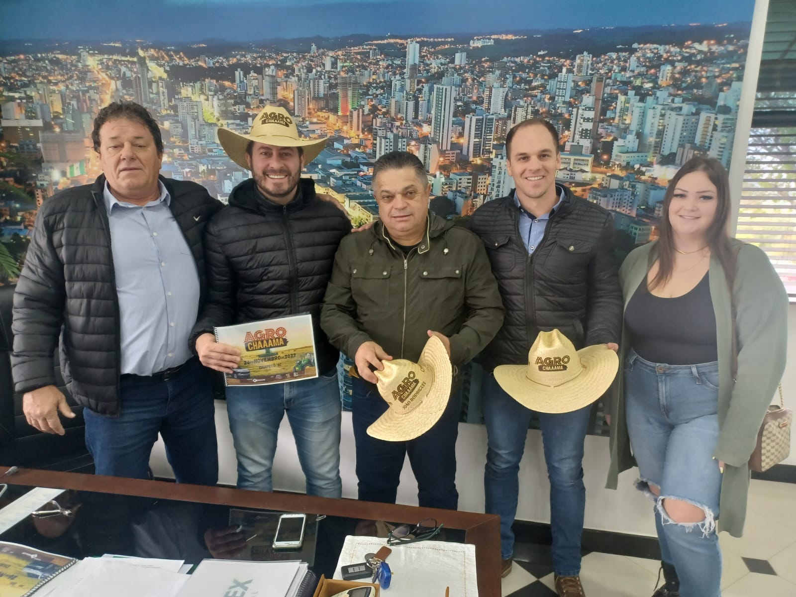 Estiveram no Gabinete do prefeito de Chapecó, João Rodrigues, na manhã desta segunda-feira, os realizadores do AGRO Chaaama, evento que vai ser realizado nos dias 26 e 27 de novembro de 2022, na fazenda Zanrosso, em Chapecó-SC.