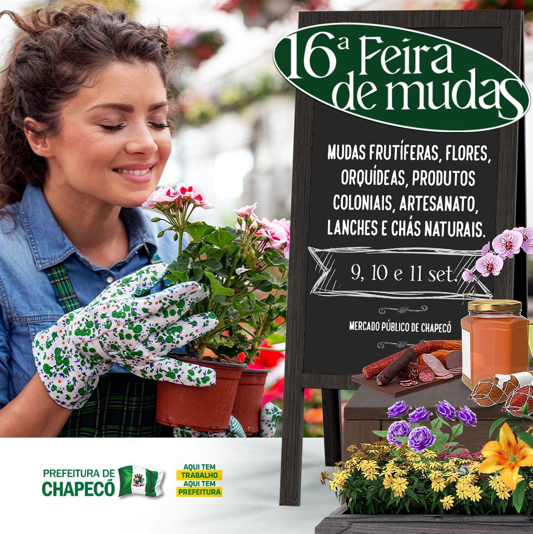 A partir de sexta-feira será realizada a 16a Feira de mudas frutíferas, flores, orquídeas, produtos coloniais, artesanato, lanches e chás naturais, no pátio do Mercado Público de Chapecó. O horário será das 8h às 18h e são esperadas de seis mil a sete mil pessoas até domingo.