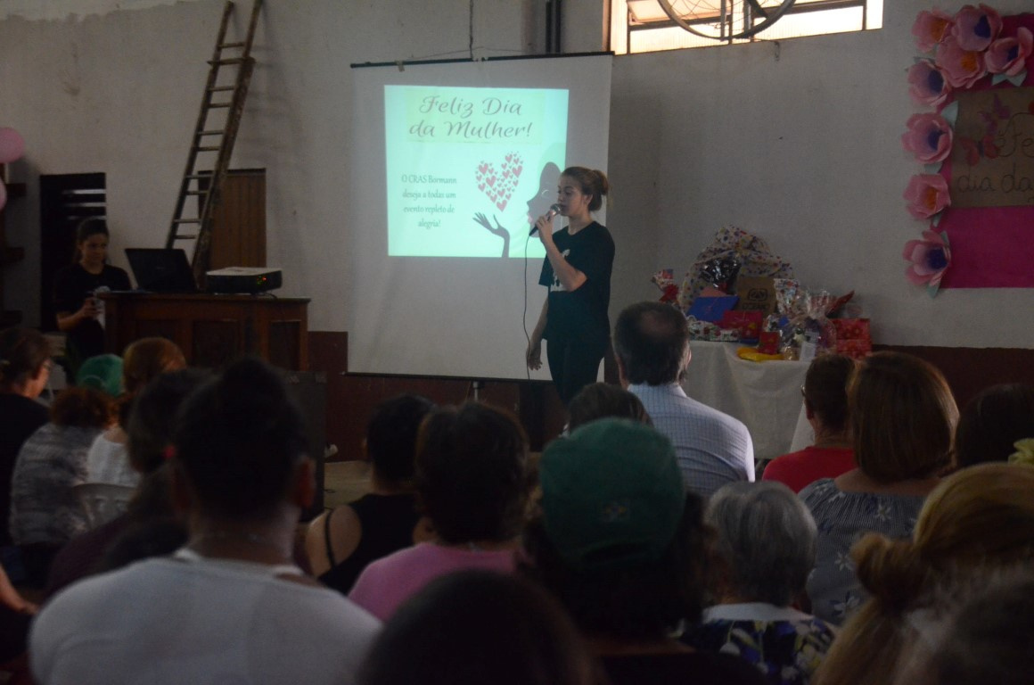 Contação de história, palestra sobre a importância da atividade física, apresentação de música com o Grupo do Núcleo, declamação de poesias e sorteio de brindes. Assim foi a programação em comemoração ao Dia da Mulher realizado na comunidade do Distrito de Marechal Bormann, na terça-feira (13), organizado pela equipe do Centro de Referência em Assistência Social CRAS e que reuniu cerca de 150 mulheres de 08 grupos de mulheres da região no Salão da Igreja. Além das mulheres da comunidade, participaram da atividade o Vice-prefeito de Chapecó, Elio Cella, a Secretária de Assistência Social, Ulda Baldissera e a equipe do CRAS.