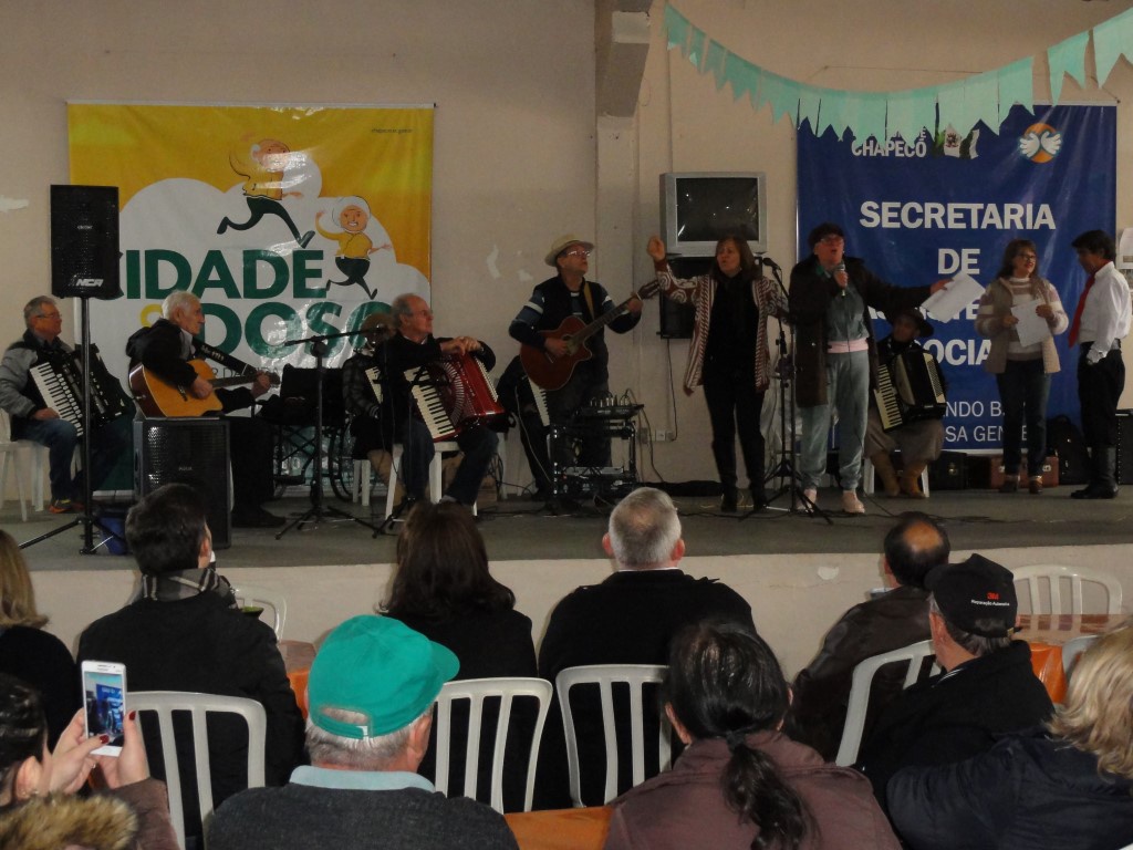 O prefeito de Gaspar SC, Kleber Edson Wan-Dall, acompanhado pela primeira dama Leila Wan-Dall, o Secretário de Assistência Social Ernesto Hostin e a Coordenadora do Centro de Convivência do Idoso de Gaspar, Andreia Schramm estiveram em Chapecó para conhecer a estrutura, serviços e atendimentos oferecidos pela Cidade do Idoso. A intenção de acordo com o prefeito era conhecer o espaço e, na medida das necessidades e realidade de Gaspar, levar a ideia para o município. De acordo com o prefeito, importante o serviço especialmente pela prevenção que oferece aos usuários. Os atendimentos médicos, atividades físicas, aulas de alfabetização são muito importantes e trazem muita qualidade de vida. O idoso precisa de atenção e a Cidade do Idoso tem um complexo estruturado e planejado para atendê-los. É uma estrutura de saltar os olhos, comentou. O prefeito também assistiu um show de talentos que movimentou a Cidade do Idoso na quinta-feira (20). Com modas de gaita e acompanhamento de violão, vozes afinadas, declamações de poesia e apresentações de dança os idosos mostraram que disposição não falta.