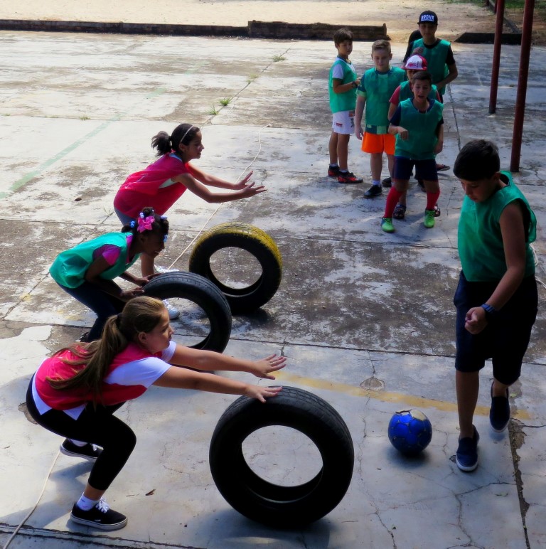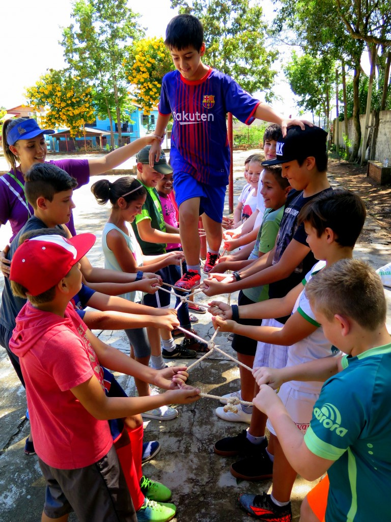 Por isso os jogos são importantes instrumentos de desenvolvimento de crianças e jovens na educação. Longe de servirem apenas como fonte de diversão, o que já os torna importantes, propiciam situações que podem ser exploradas de diversas maneiras educativas. Foi a partir dessa visão que a professora Viviane Thiel, da Escola Básica Municipal Jacob Gisi, situada no bairro Engenho Braun, percebeu a necessidade de fortalecer os vínculos e o trabalho em grupo através de jogos cooperativos com as turmas do 1º ao 5º ano.
