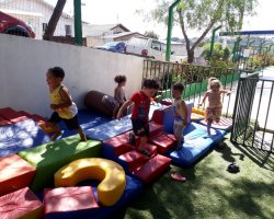 De acordo com o professor Keyth Yagoh da Silva dos Santos, o objetivo dessa atividade foi conhecer e sentir as partes do seu corpo a fim de familiarizar-se com elas e valorizar suas funções, explorando diferentes situações criando novas formas de movimentar-se ampliando as formas de locomoção e promovendo a maneira correta de movimentar-se seus limites e possibilidades do seu corpo. Sabermos que crianças desta faixa etária estão reconhecendo o corpo e descobrindo as suas possibilidades, quero disponibilizar situações em que as criança explorem de diferentes maneiras estas possibilidades em diferentes espaços e ambientes, explicou. Os alunos aprendem através das brincadeiras. Gosto daqui porque dá pra virar cambalhota e a gente não se machuca, comentou o aluno Luiz Tonello dos Santos de 03 anos.