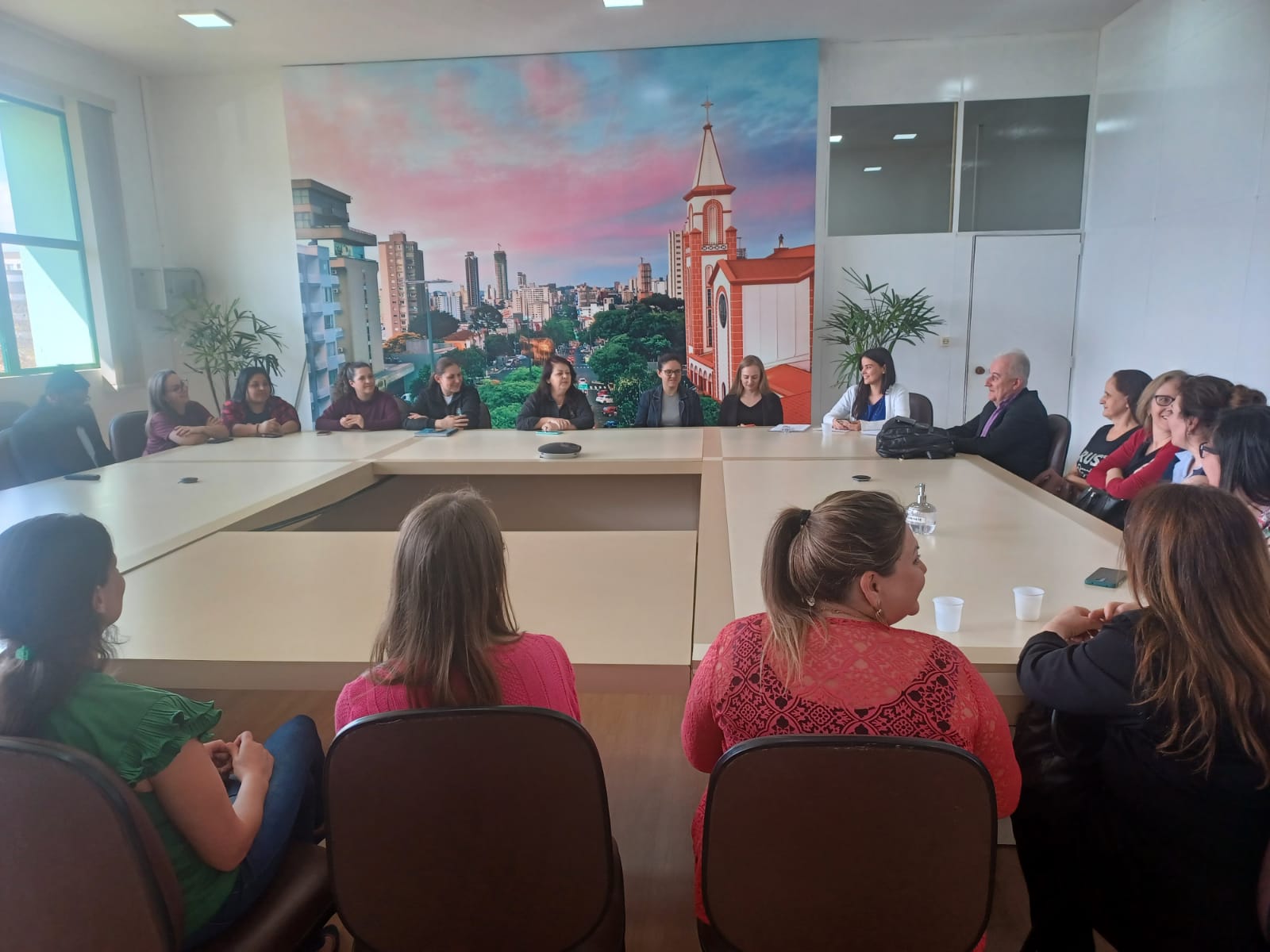 sala de reuniões da Prefeitura de Chapecó, com a presença dos