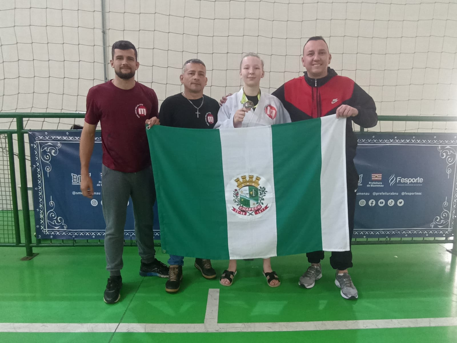 Neste domingo (18) 4º dia de disputas, o Município de Chapecó conquistou suas primeiras medalhas na 34ª edição dos Joguinhos Abertos de Santa Catarina que está sendo realizado na cidade de Blumenau, a atleta Isabela Reinke Winterkom conquistou a medalha de prata na modalidade de Jiu Jitsu categoria até 65kg e no Tênis de Mesa de duplas masculino, Lucas Grossl e Carlos Simioni também conquistaram a medalha de prata.