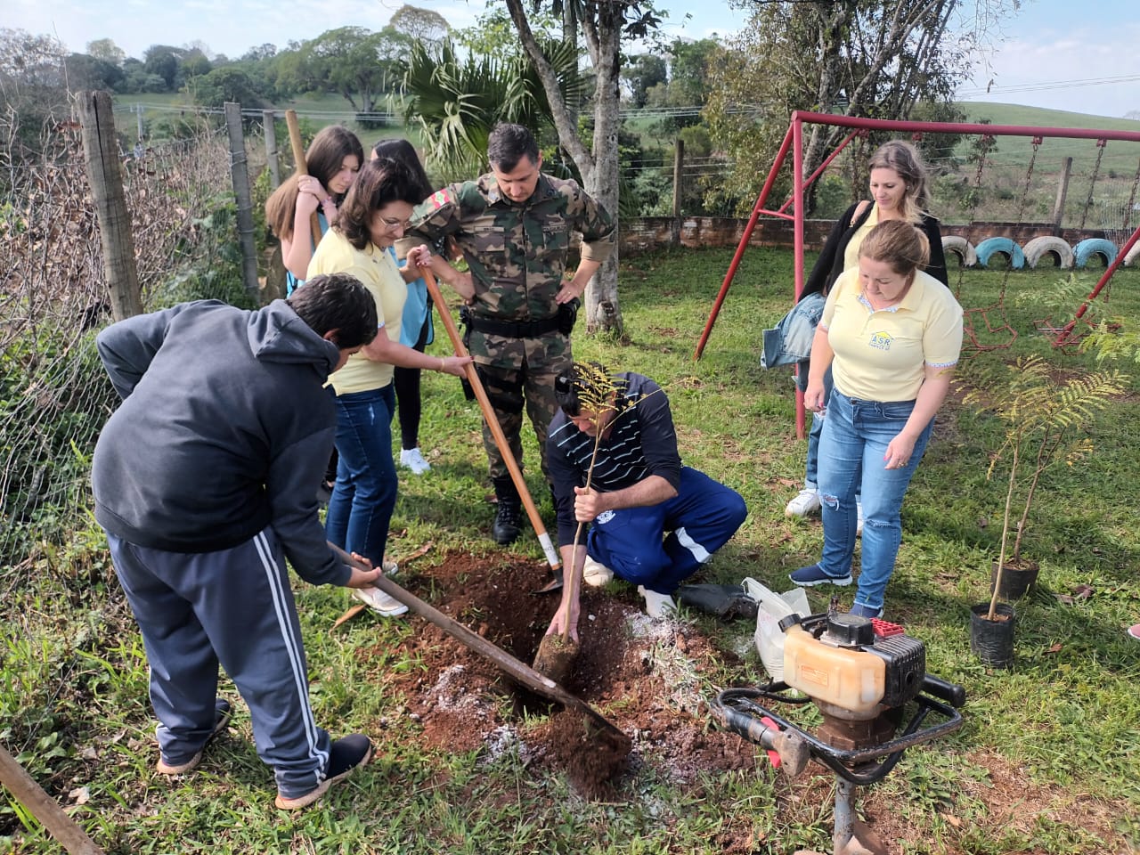 E nesta quarta-feira, Dia da Árvore, também foi realizado plantio de mudas de árvores nativas na Escola Básica Municipal Linha Campinas. A atividade foi coordenada pela Associação de Senhoras de Rotarianos de Chapecó, com o apoio da Secretaria de Desenvolvimento Rural, Secretaria de Educação, Agropecuária Desbravador, Viverde Floricultura e Paisagismo, Rotary Club de Chapecó, Sicoob Maxi Crédito, Rotaract, Interact e Polícia Militar Ambiental.