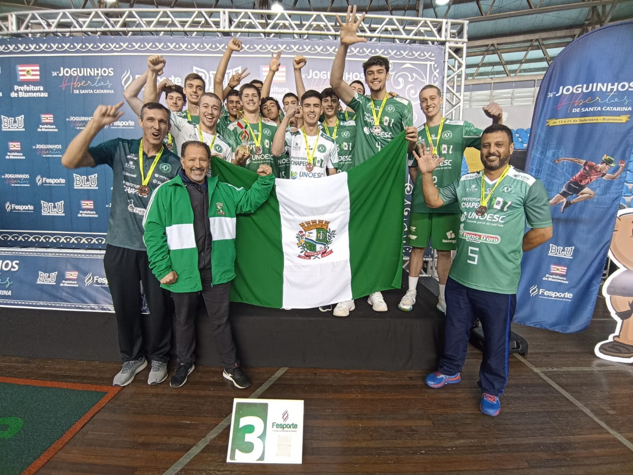 Outra modalidade que encerrou neste domingo foi o Voleibol masculino. Os garotos Chapecoenses treinados por Evandro Pontes venceram com facilidade a cidade de Jaraguá do Sul e finalizaram a competição em terceiro lugar. O placar foi de 3x0 com parciais de 25x16, 25x22 e 25x20. Foi o único troféu conquistado por Chapecó na competição.