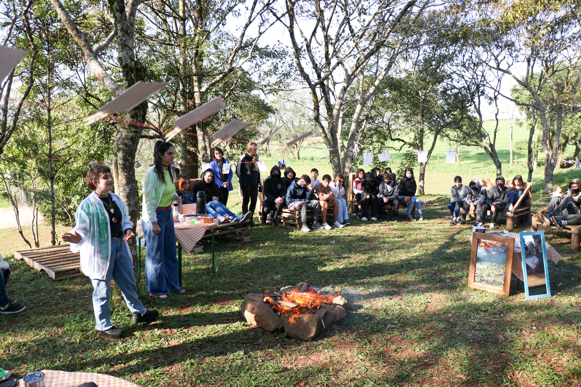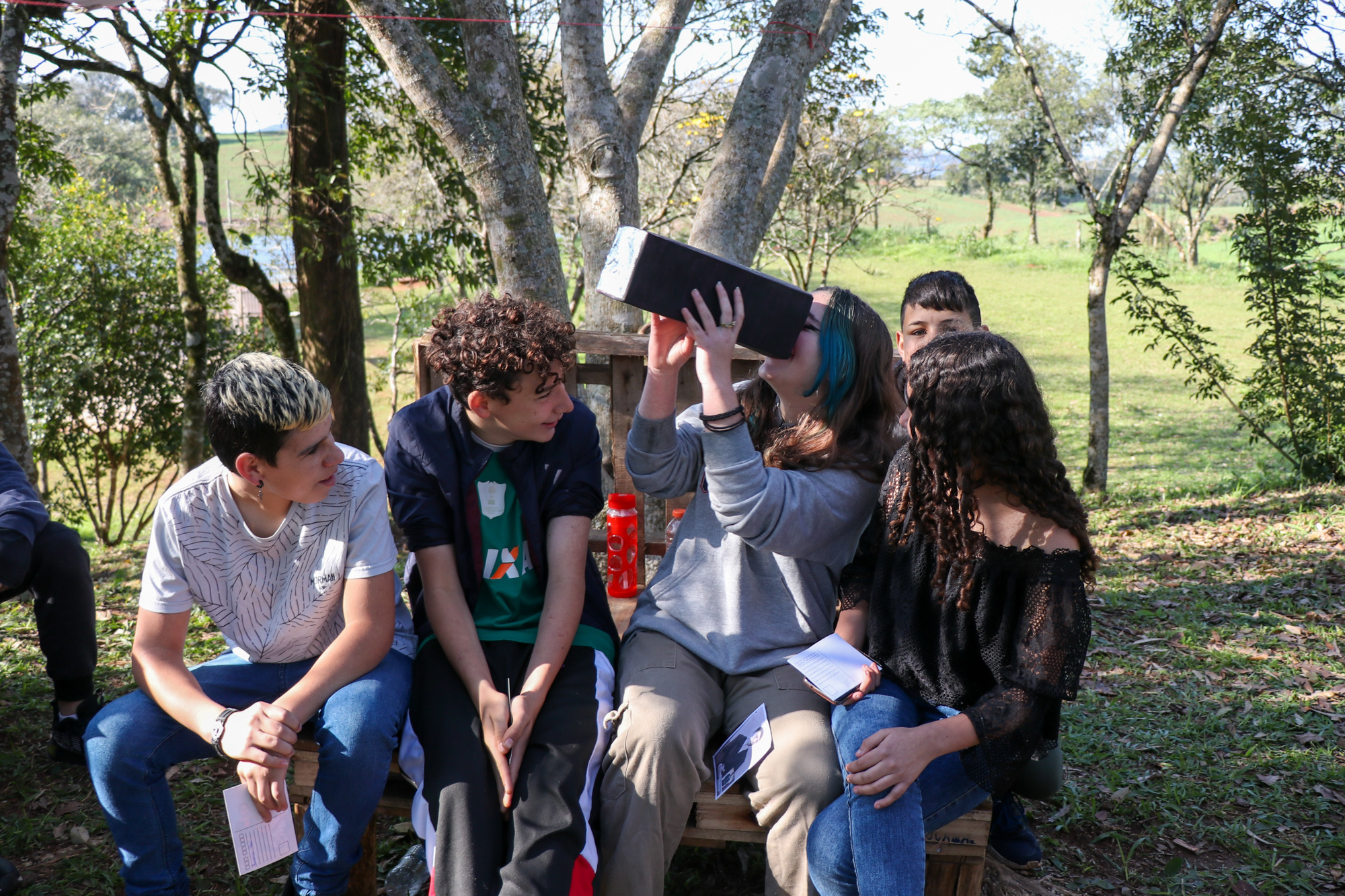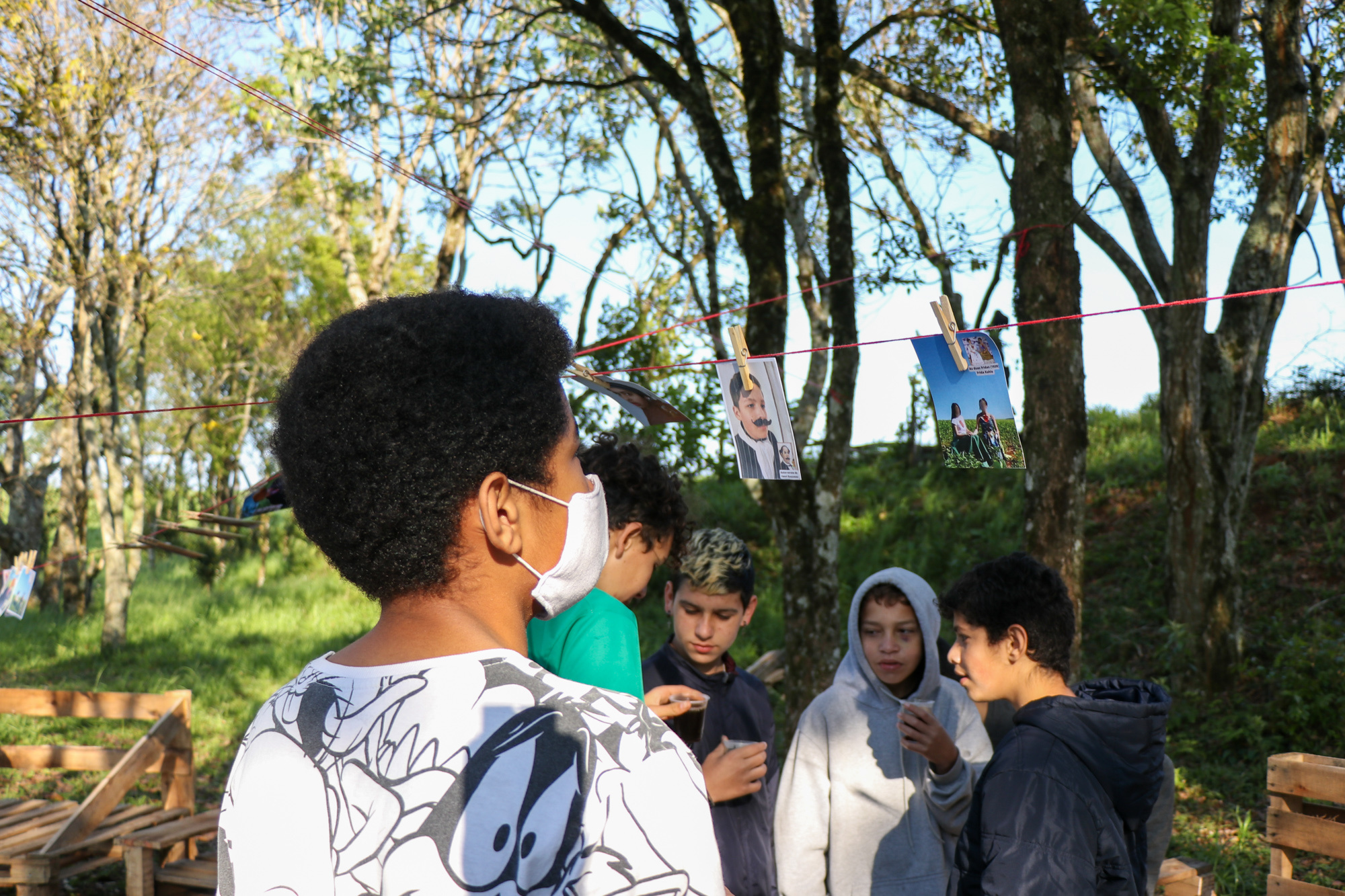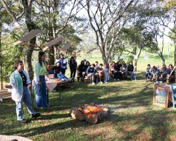 Para ampliar o conhecimento sobre o tema, os estudantes da EBM André Antonio Marafon se deslocaram até a EBM Linha Campinas para dialogar em torno das proposições realizadas. Nesta ação foi realizada a troca de cartões postais criados a partir das obras de arte, saída fotográfica pela área de escola, sendo utilizada a câmera pinhole. Na sequência, as fotos foram reveladas, através de processo químico, em uma sala de aula montada para esse fim com segurança e orientação de um técnico de laboratório da Unochapecó.