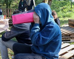 No segundo momento do planejamento, os estudantes criaram câmeras escuras, o que auxiliou na compreensão da produção da fotografia. As turmas também desenvolveram câmeras pinholes para a realização de exercício fotográfico e de revelação analógica.