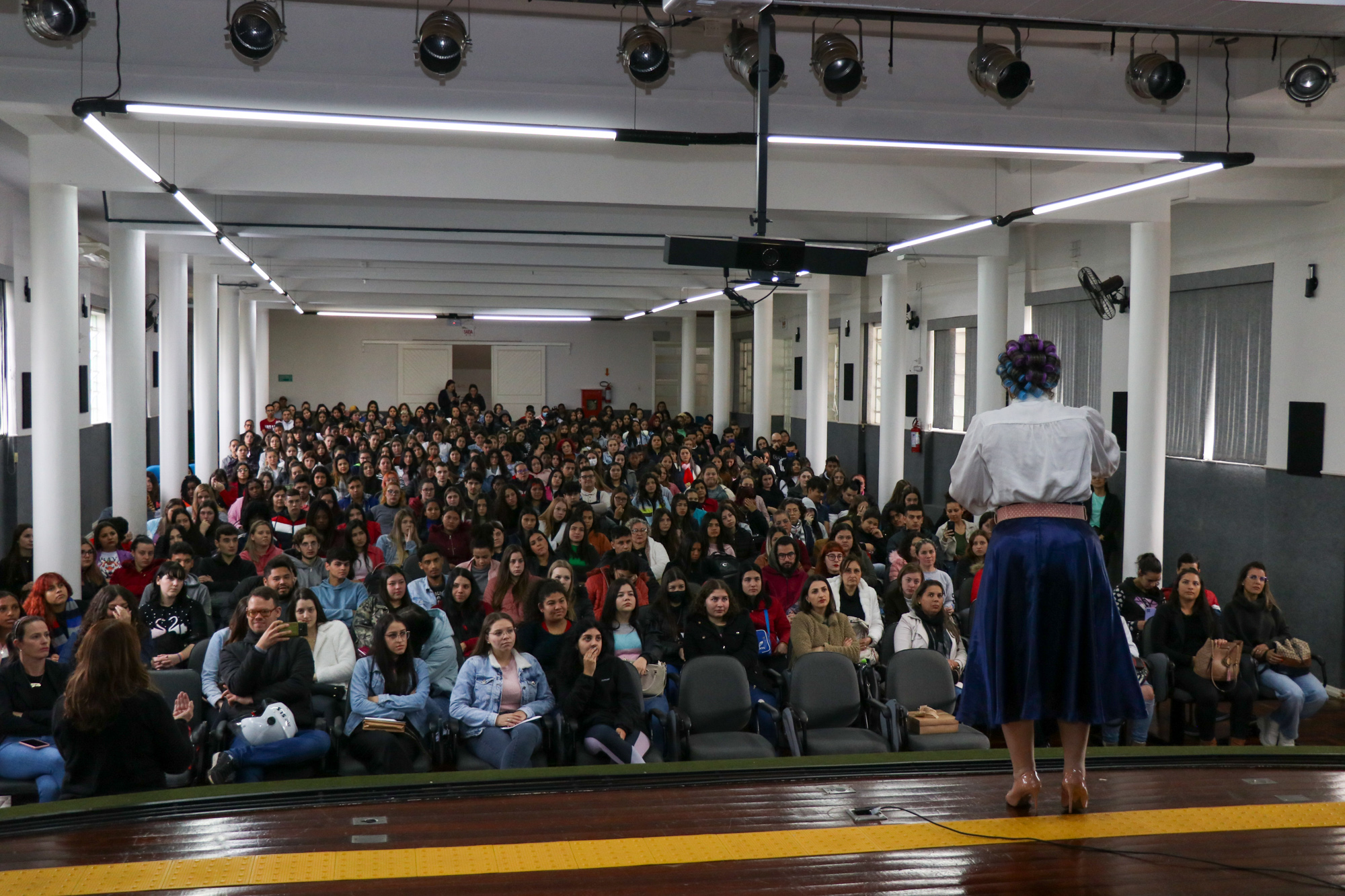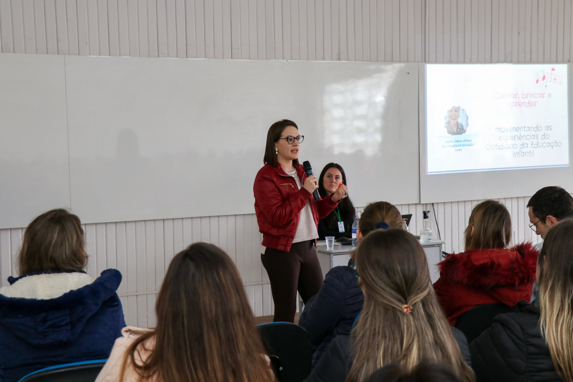 Os estagiários que atuam na rede municipal de ensino participaram de uma palestra, tendo como objetivo ampliar os olhares em relação às práticas cotidianas vivenciadas com as crianças. Participaram desse momento cerca de 800 pessoas.