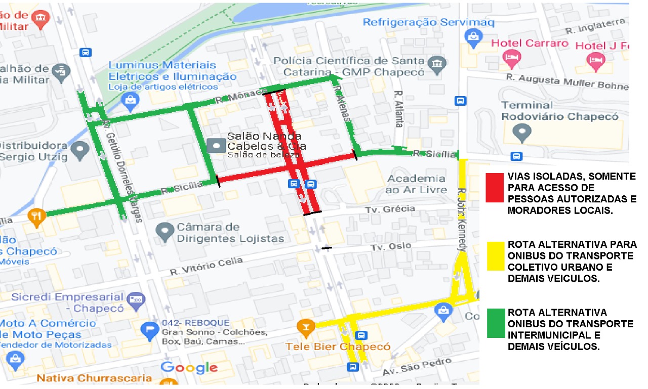 PARA TRANSPORTE PÚBLICO URBANO E DEMAIS VEÍCULOS RUA JOHN KENNEDY, RUA PAULO MARQUES, AV. NEREU RAMOS E AV. GETÚLIO D. VARGAS.