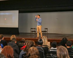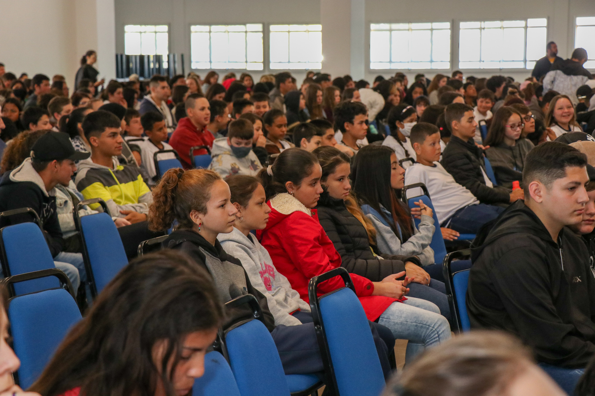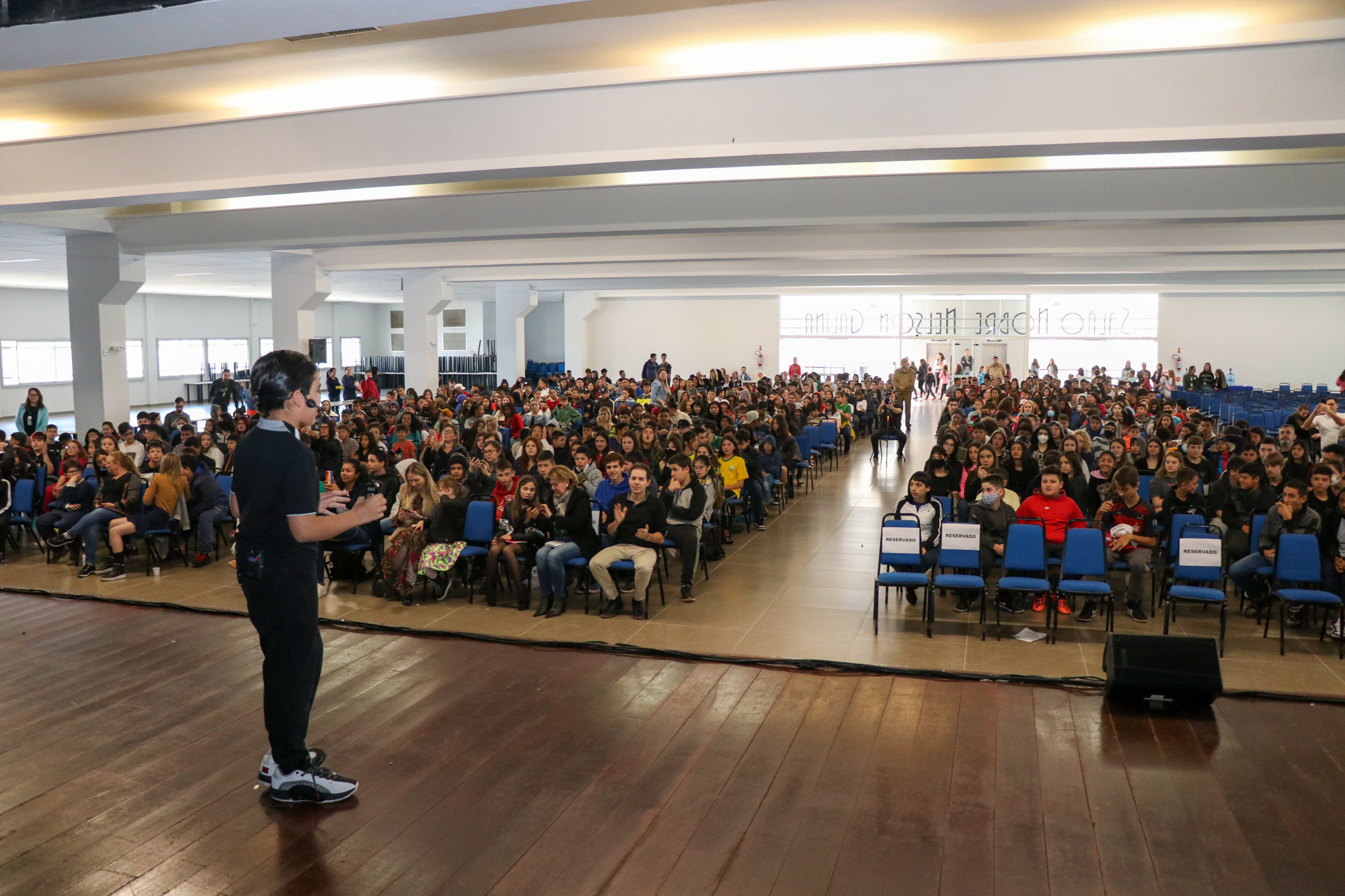 A Secretaria de Educação de Chapecó realizou nesta terça-feira (04) uma palestra motivacional para estudantes do ensino fundamental das escolas públicas municipais e algumas escolas da rede estadual. O evento foi realizado no Salão Nobre do Centro de Cultura e Eventos Plínio Arlindo de Nes, e atendeu aproximadamente 1800 pessoas.