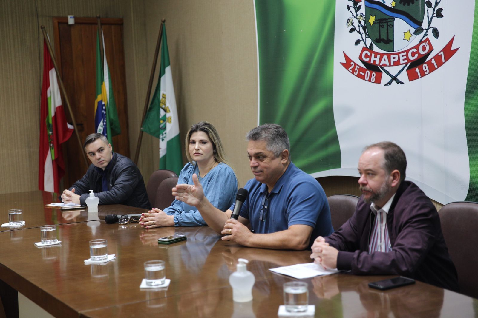 Estiveram presentes o prefeito de Chapecó, João Rodrigues, a diretora de Regularização Fundiária e Habitação, Edi Folle, o Procurador Geral do Município, Jauro Von Gehlen, e o Diretor de Meio Ambiente, Marck Gehlen.