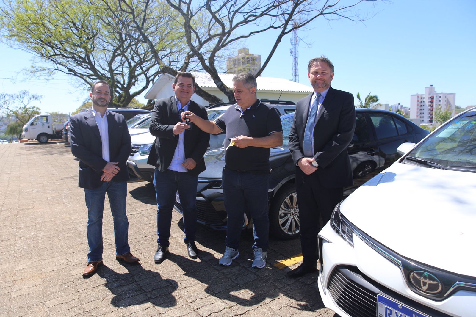 Na manhã desta terça-feira o prefeito de Chapecó, João Rodrigues, fez a entrega das chaves de cinco veículos novos, modelos SUV e Sedan, para a Polícia Civil. O valor do investimento foi de R$ 629 mil. De acordo com o prefeito, somente em um ano e dez meses o município já repassou 12 veículos, mais do que o Governo do Estado, que repassou nove veículos no período.