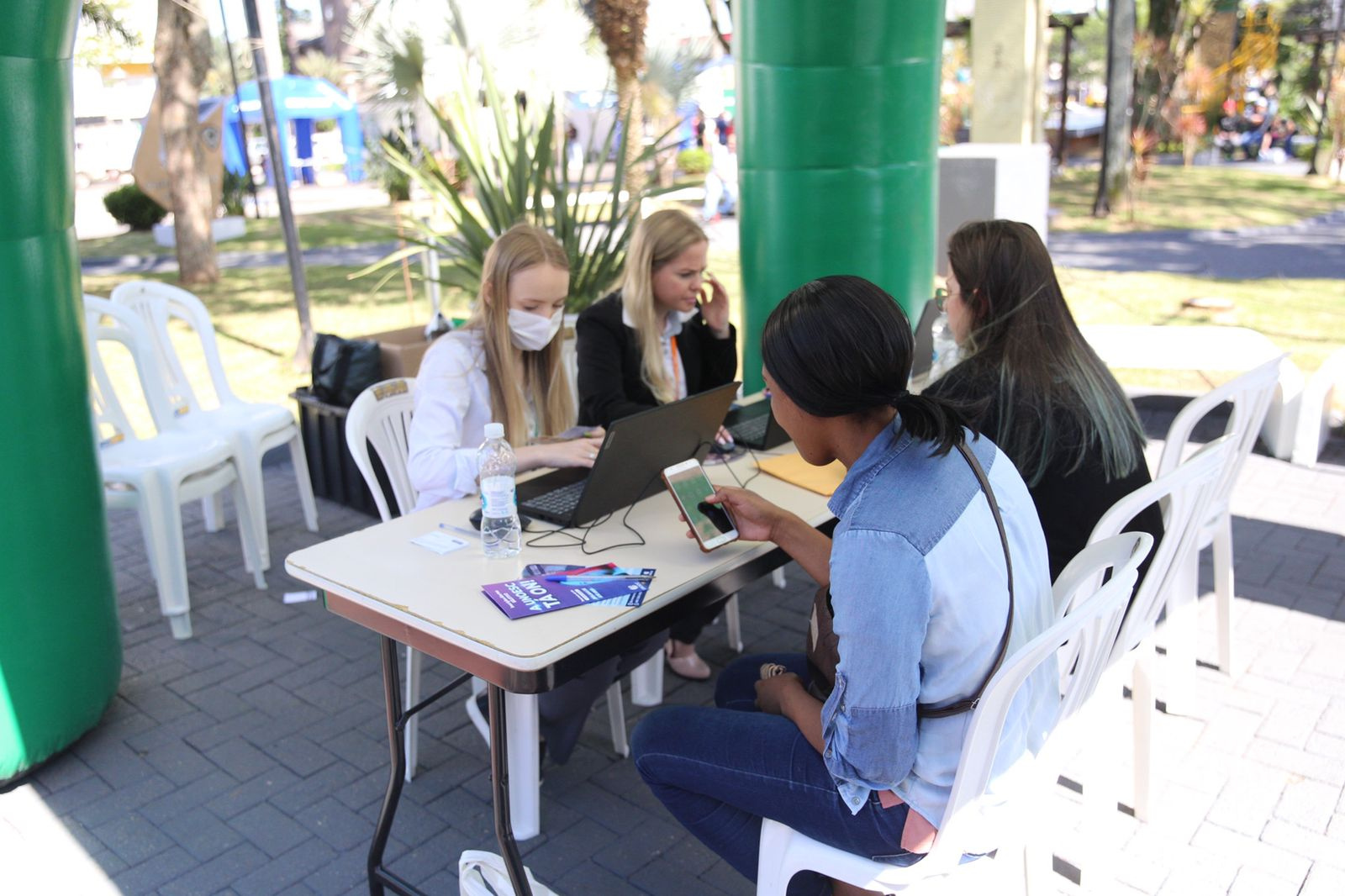 Inclusive uma equipe do Oportuniza Chapecó, promovido pela Secretaria de Assistência Social do Município, está presente informando quais os cursos disponíveis. Também estão presentes equipes do Balcão de Empregos, do Departamento de Tributos e do Simplifica Chapecó, que estão fornecendo informações sobre vagas, situação cadastral, abertura ou baixa de empresa, solicitar nota fiscal, tirar dúvidas sobre alvarás, IPTU, ITBI e ISS.