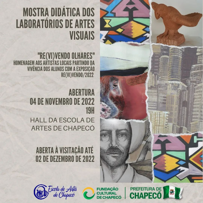 A Escola de Artes de Chapecó promove a Mostra Didática dos Cursos de Laboratórios de Artes Visuais e Expressão Visual. A exposição já é consagrada no calendário escolar, e contempla trabalhos dos alunos que frequentaram os cursos durante o ano.