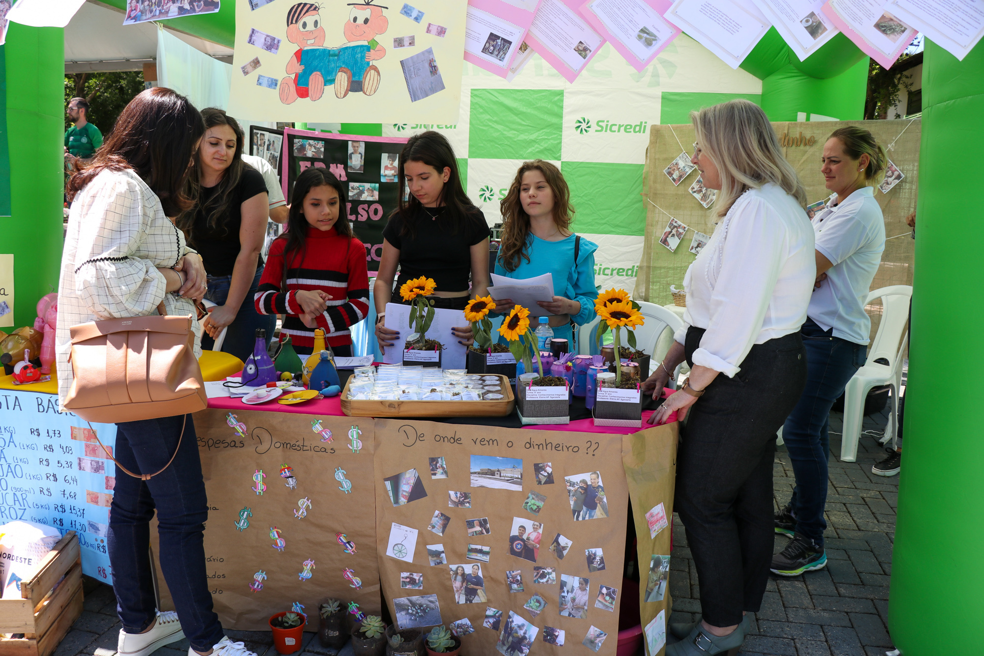 A socialização dos trabalhos realizados pelos professores de Conhecimentos Integrados e os alunos das EBMs a partir da temática Educação Financeira foi realizada na quinta-feira passada. A mostra aconteceu em parceria com a Cooperativa SICREDI, através do Programa Cooperação na ponta do lápis e foi realizada no Eco Parque de Chapecó.