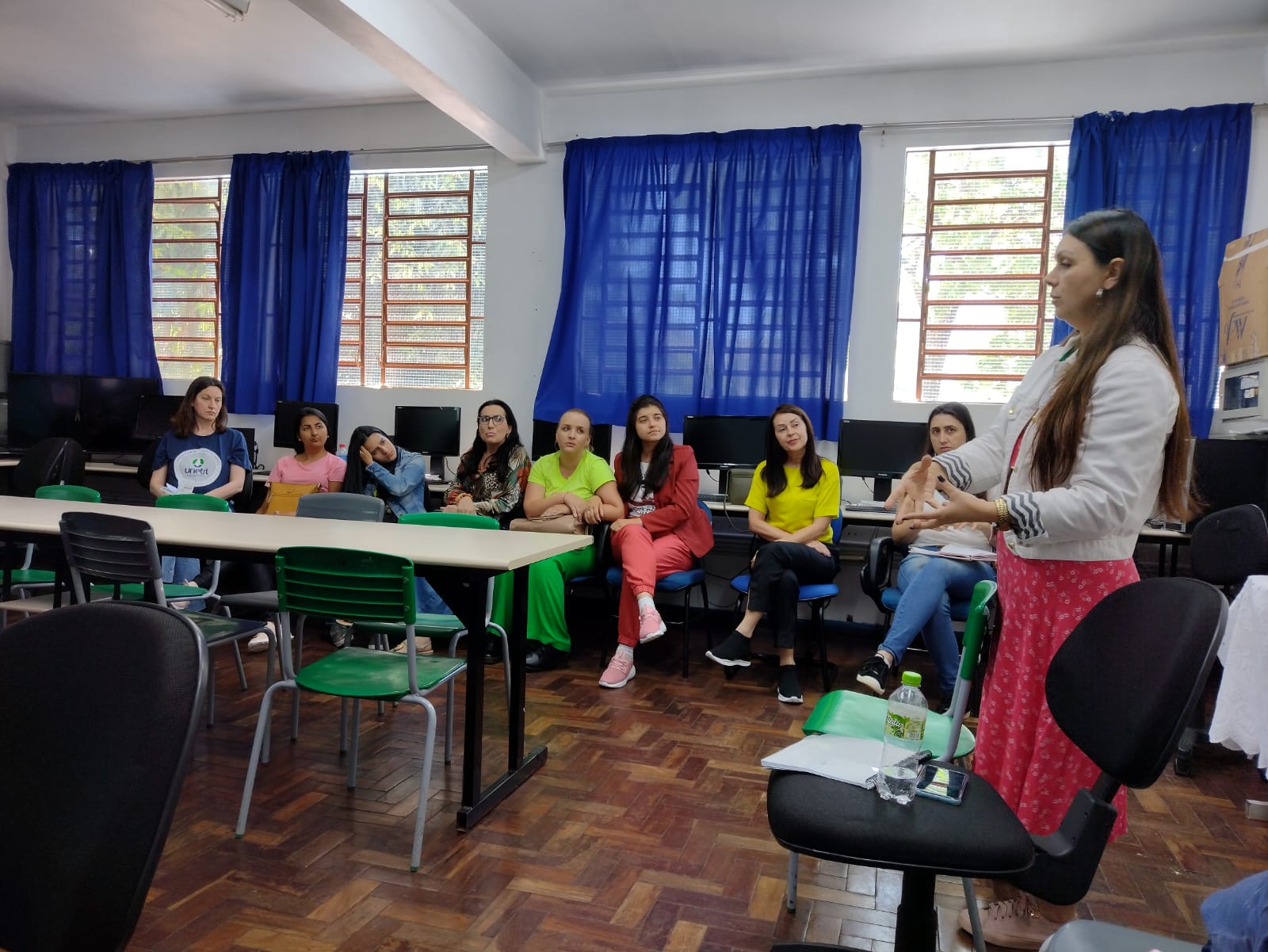 Na manhã de quarta feira a Secretaria Municipal de Educação, por intermédio do Setor de Educação Especial, recebeu, na EBM Jardim do Lago, a visita das professoras Universitárias Elizandra Fiorin Soares, Rosana Salete Piccinnin e Zelandia Cecconi, juntamente com algumas acadêmicas da 8ª fase do curso de Pedagogia da Faculdade UNETRI, do município de Barracão-PR.