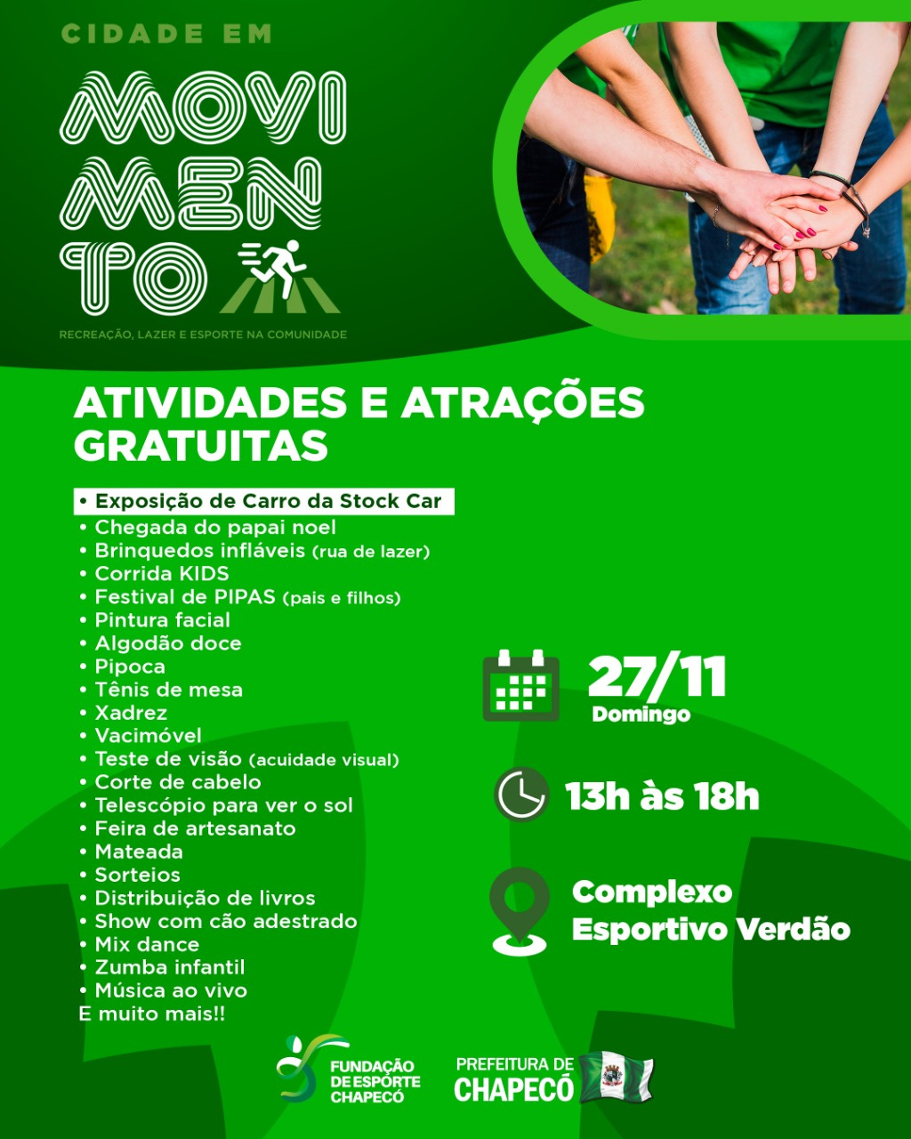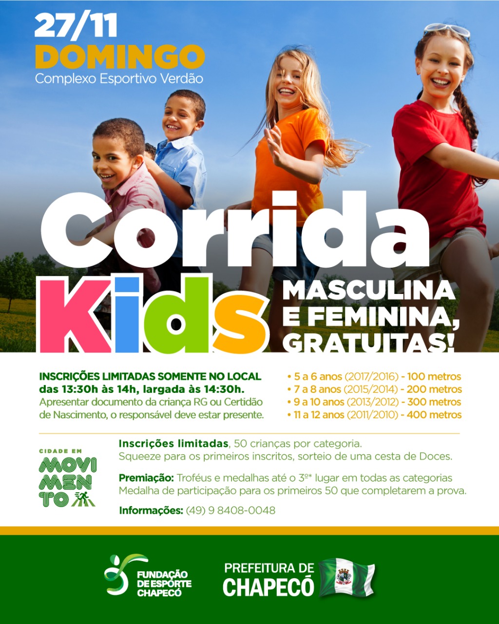 Verdão, em Chapecó: Corrida Kids, Festival de Pipas e Cidade em