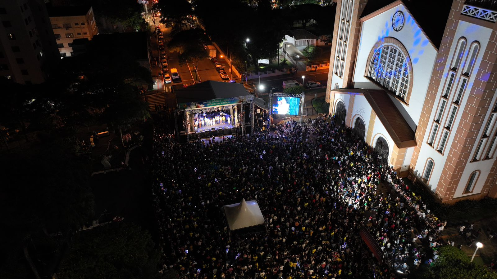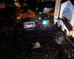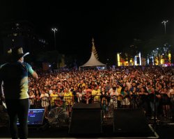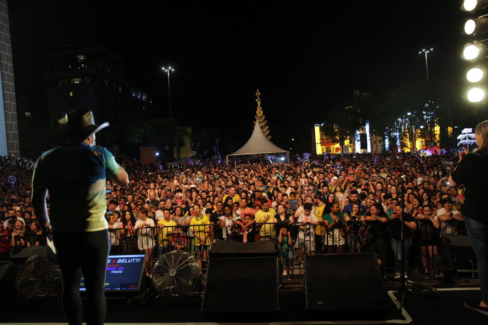 Um show nacional com Marcos & Belutti marcou a abertura da programação do Natal de Luz de Chapecó, na noite desta quinta-feira. Cerca de 25 mil pessoas foram até a praça Coronel Bertaso para cantar com a dupla, mas também para conferir as outras atrações, como a inauguração da iluminação e da decoração natalina.