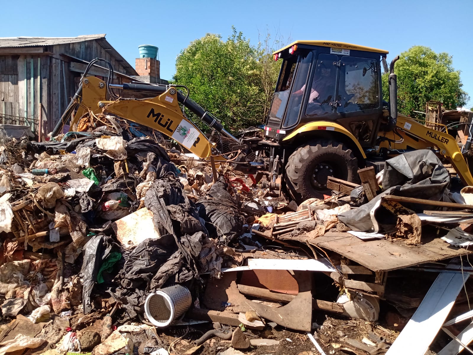 De acordo com a gerente de Saneamento da Secretaria de Infraestrutura, Graciela Heckler, foi conversado com o morador, que tem 67 anos, e pacificamente foi orientado a vender o que era possível, cerca de duas toneladas de ferro, além de 15 suínos, algumas galinhas e patos.