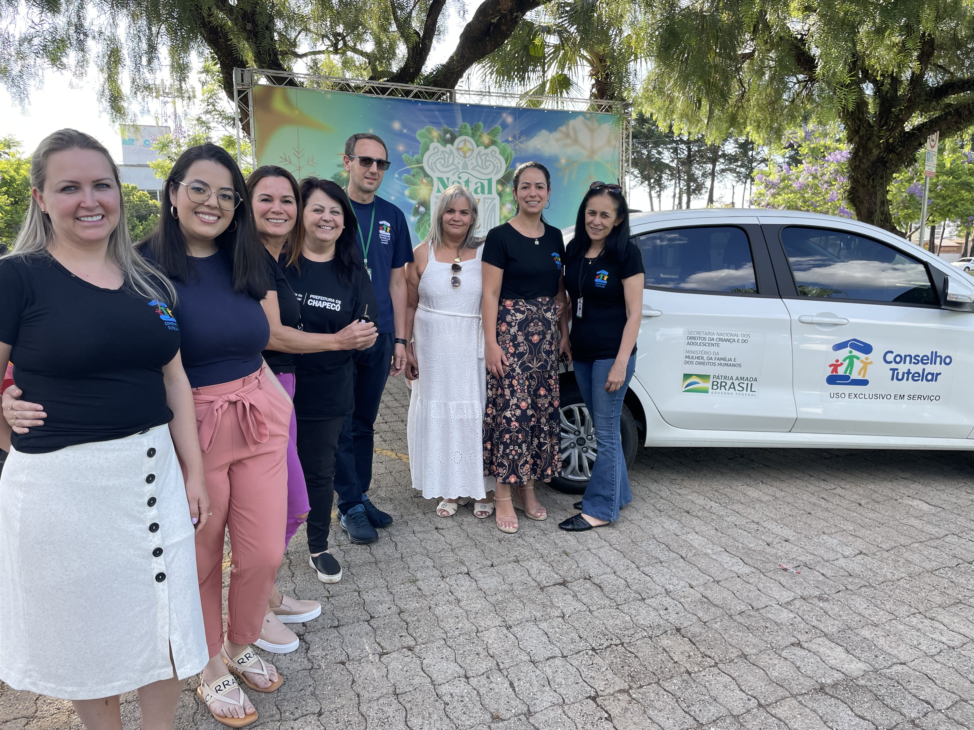 A Prefeitura de Chapecó recebeu um veículo Fiat Cronos e oito computadores do Governo Federal, do Ministério da Mulher, da Família e dos Direitos Humanos. De acordo com a diretora de Captação de Recursos, Chaiane Dalla Costa, o veículo e os computadores fazem parte de um kit com outros itens, como impressora, refrigerador, bebedouro, ar-condicionado e televisor, no valor de R$ 127.966,77. Chapecó se cadastrou junto a um edital do ministério e foi contemplado.