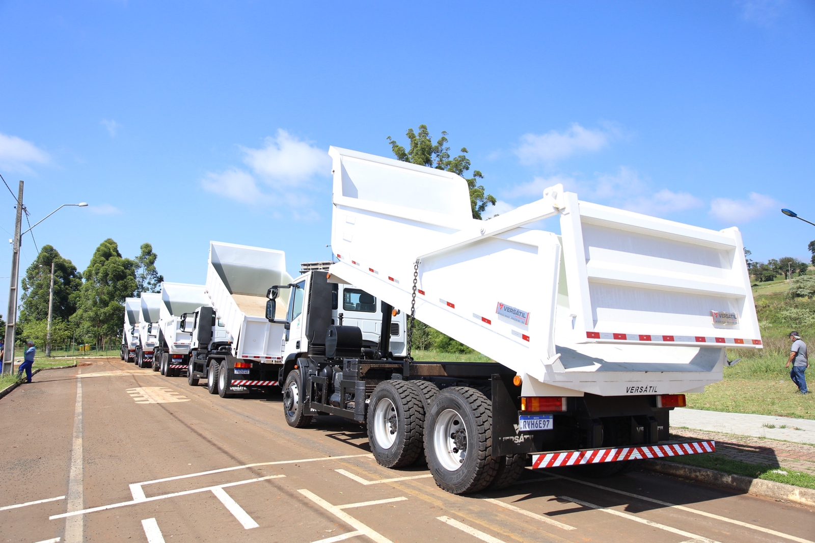 na manhã mais cinco caminhões que serão utilizados pela Secretaria