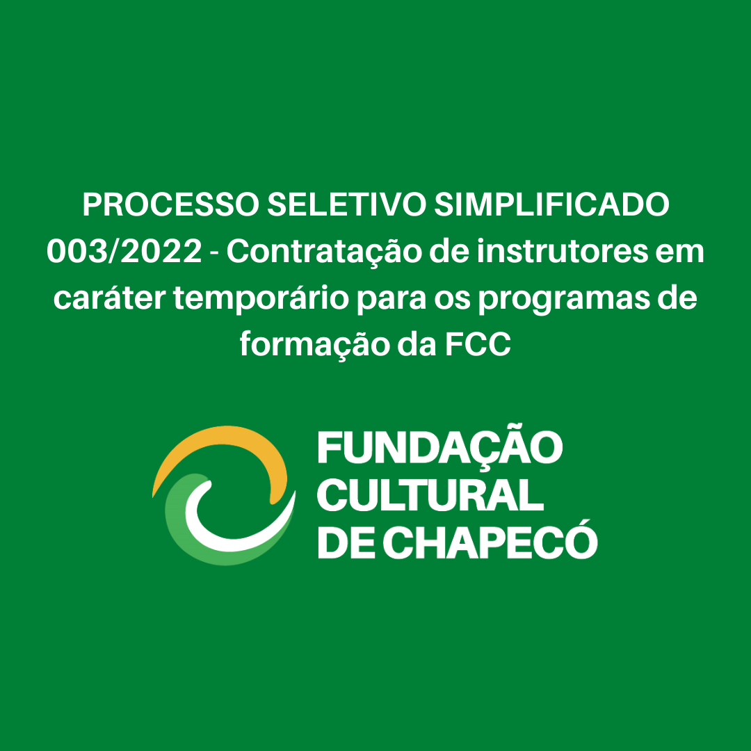 As vagas comporão o corpo docente dos programas de formação da FCC: Escola de Artes, Arte Cidadã e Orquestra Sinfônica, os quais atendem mais de 2.000 alunos, por mais de 20 cursos, em mais de 15 bairros da cidade. Serão selecionados instrutores para os cursos de Ballet Clássico, Danças Urbanas, Pintura, Acordeão, Musicalização Infantil, Piano Clássico, Clarinete, Trombone, Trompa, Violão Popular e Violino.